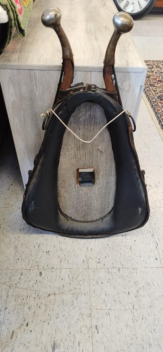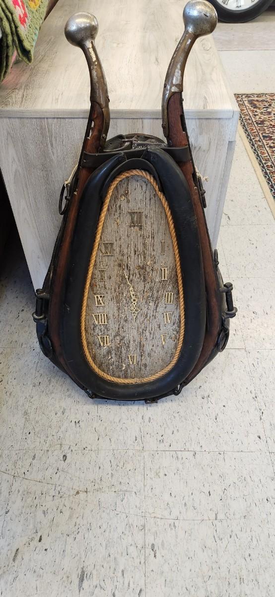 Talk about a conversation piece! Large, heavy horse collar clock.