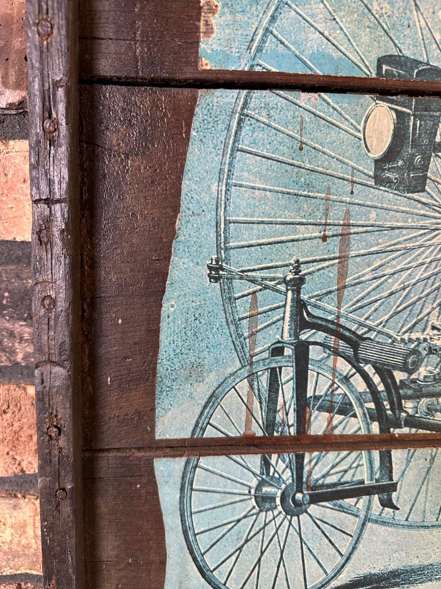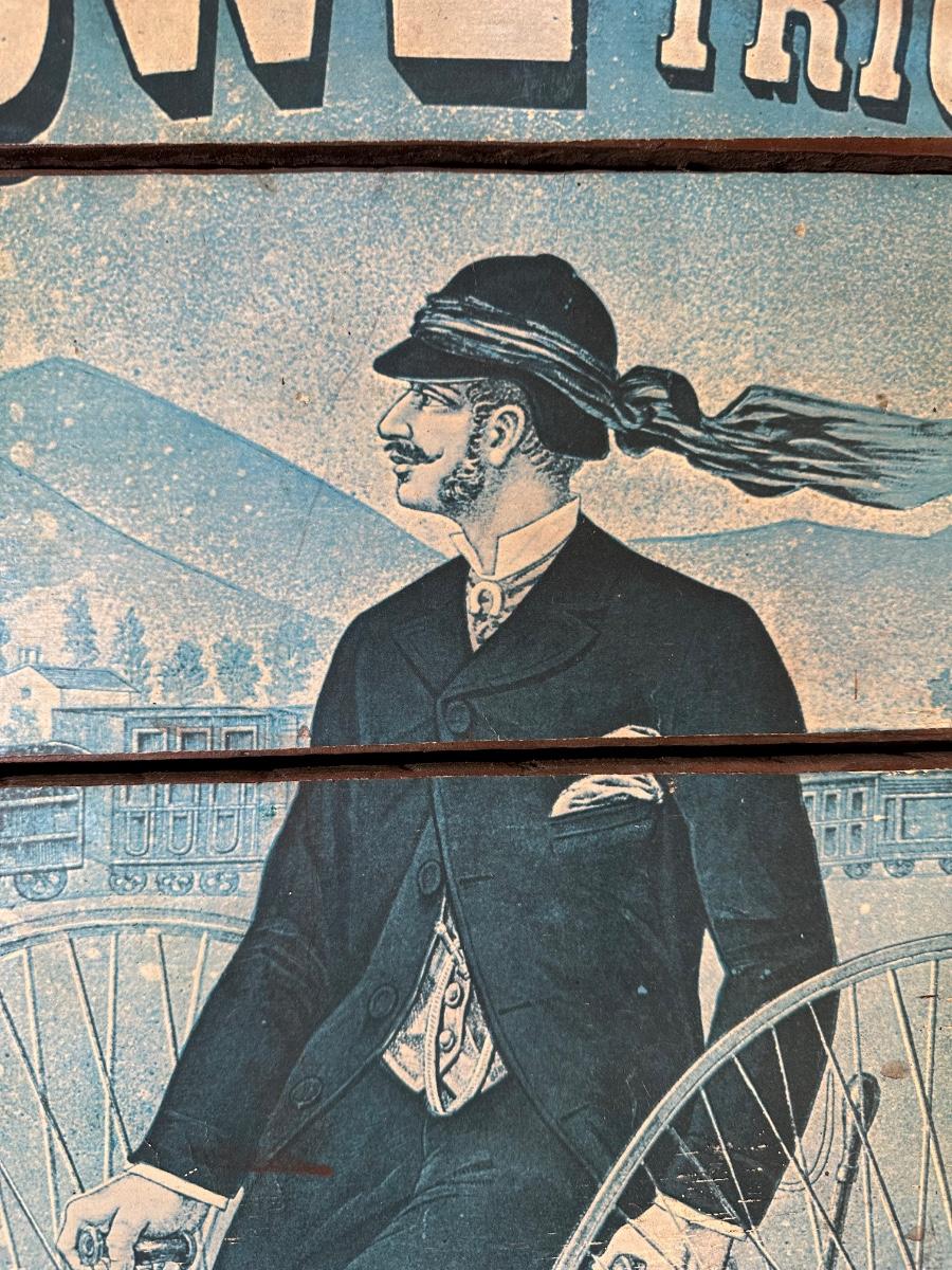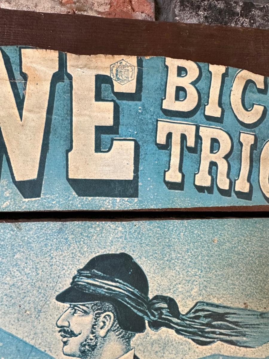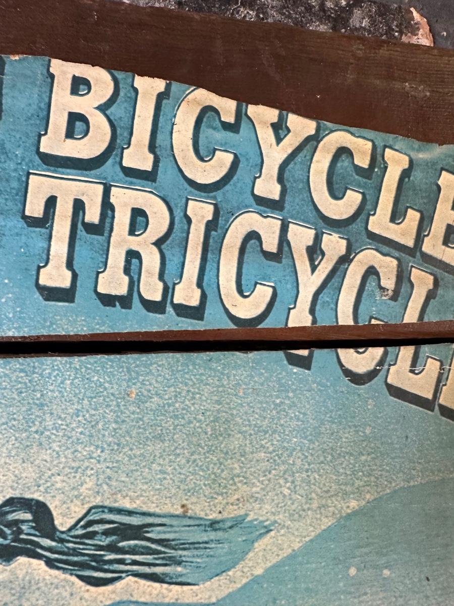 Antique HOWE Bicycles & Tricycles Advertising Sign – Mounted on Wood – Penny-Farthing Graphic