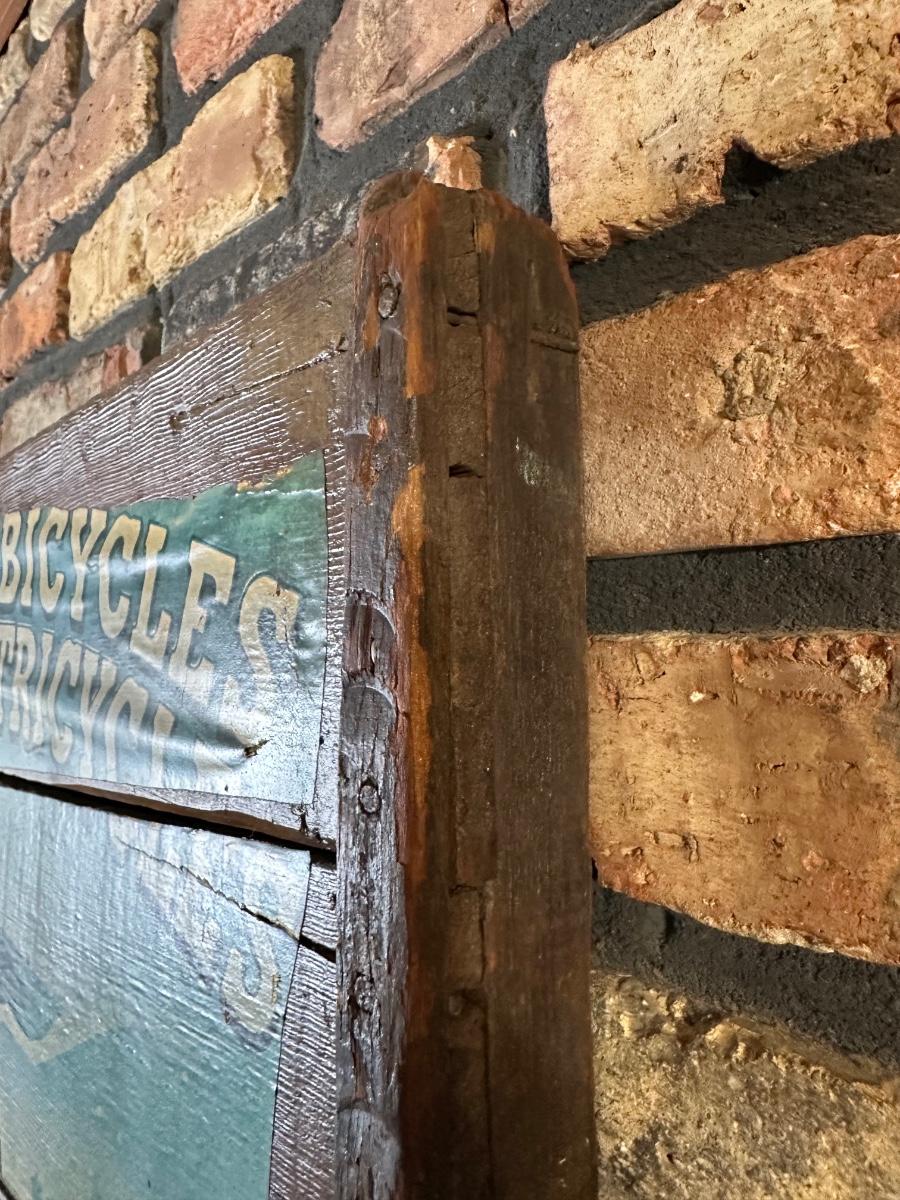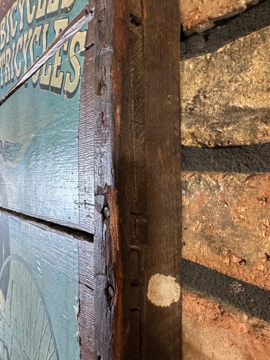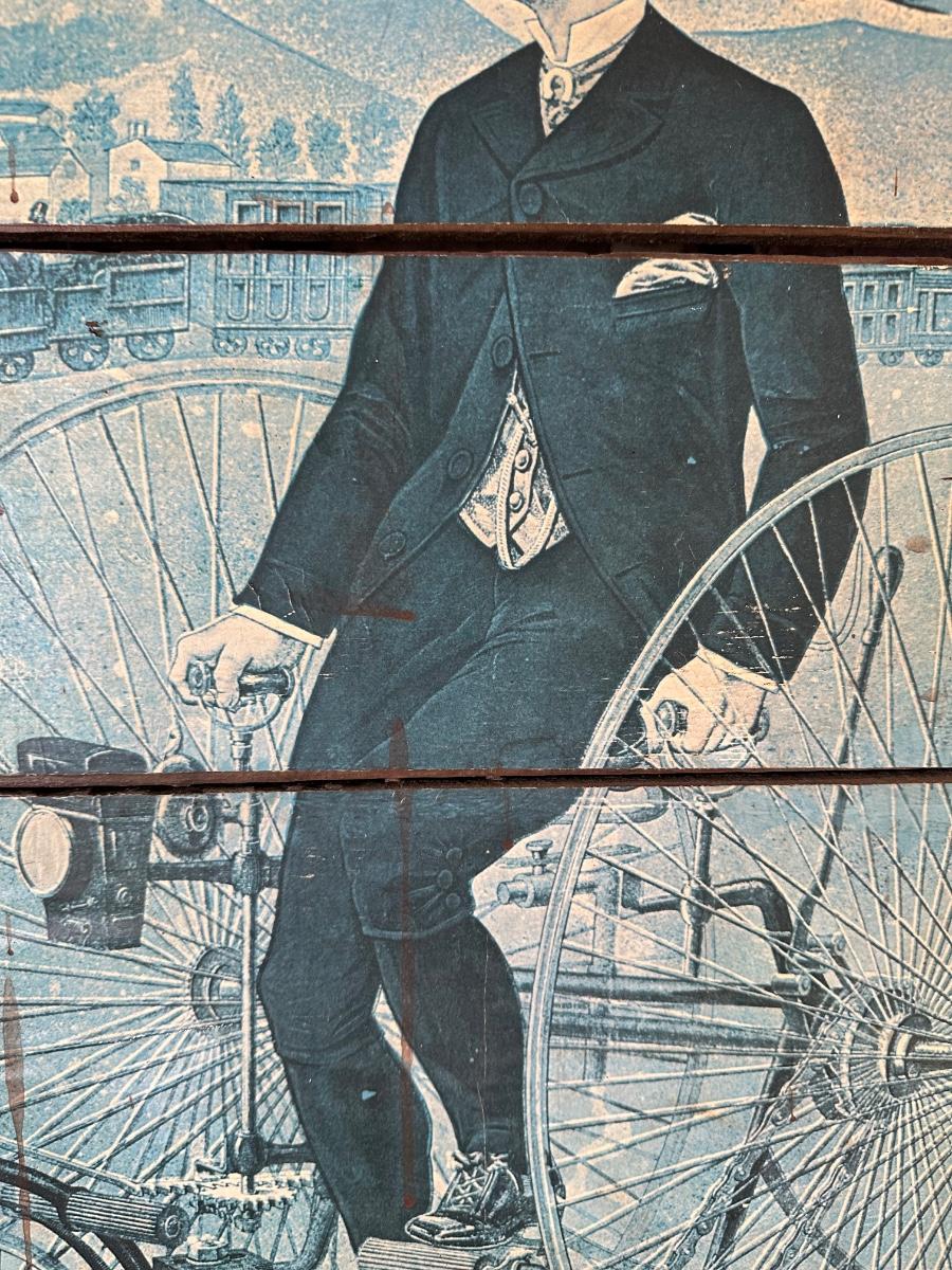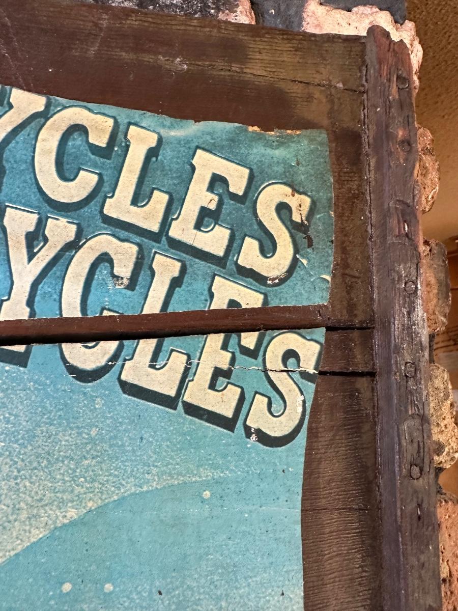 Antique HOWE Bicycles & Tricycles Advertising Sign – Mounted on Wood – Penny-Farthing Graphic