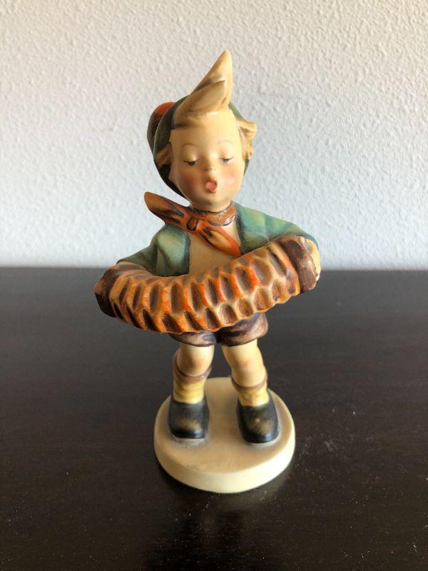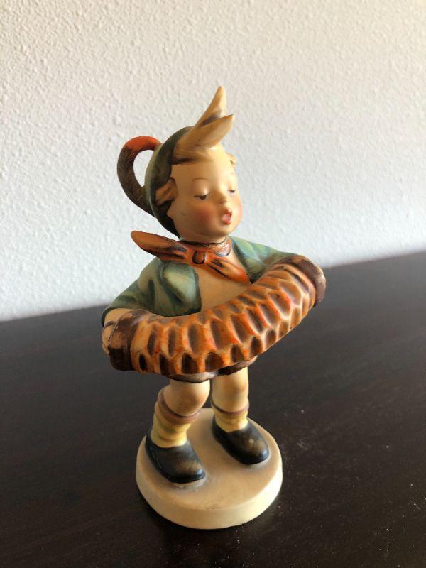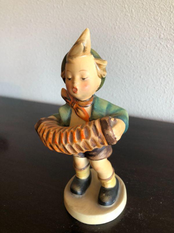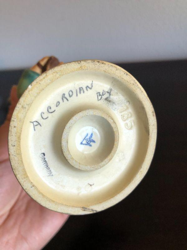 Adorable antique Hummel (#185) Accordion Boy figurine. Stamp on bottom features the full size Bee. In very good condition.