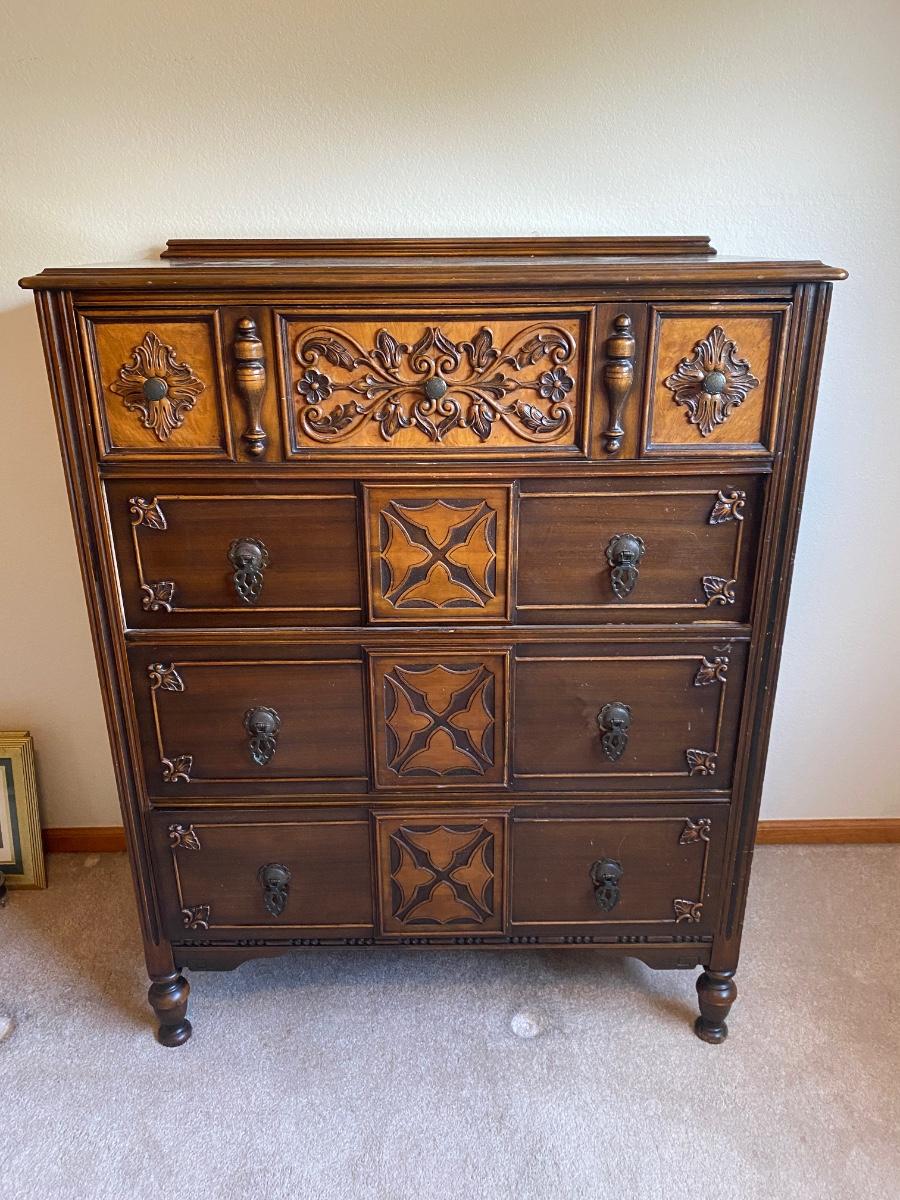 ANTIQUE HUNTLEY SIMMONS CHEST OF DRAWERS