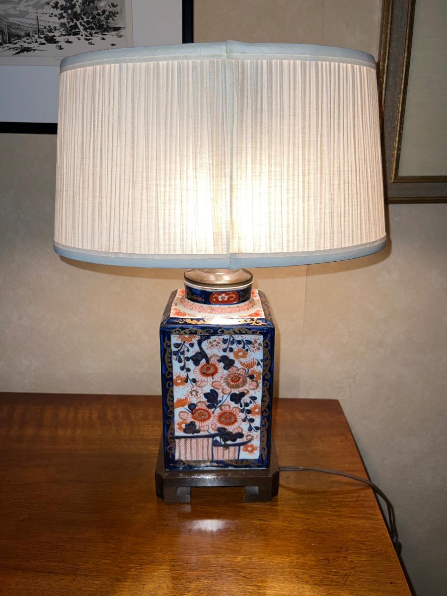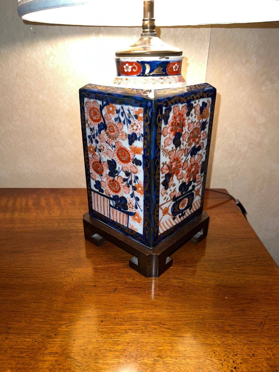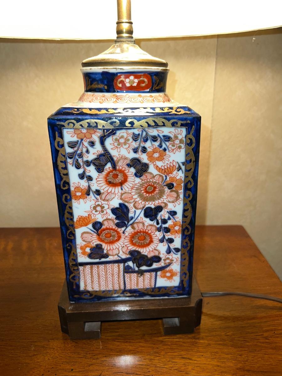 Antique Imari pattern tea caddy porcelain table lamp, 19” T x 14” W
