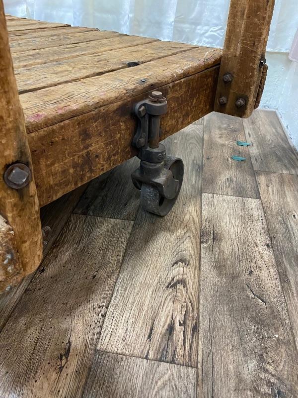 Lot #26 Antique Industrial Factory Cart cast Iron Swivel Wheels