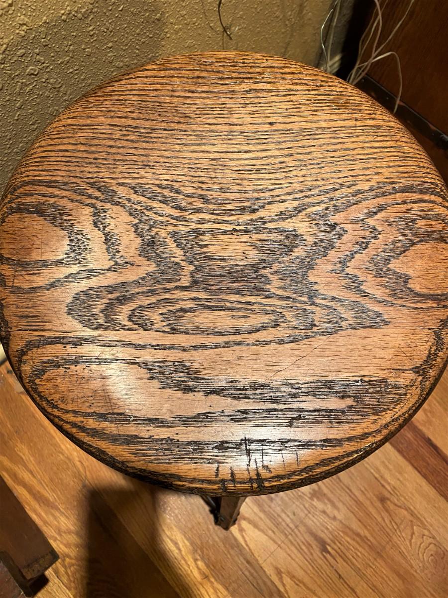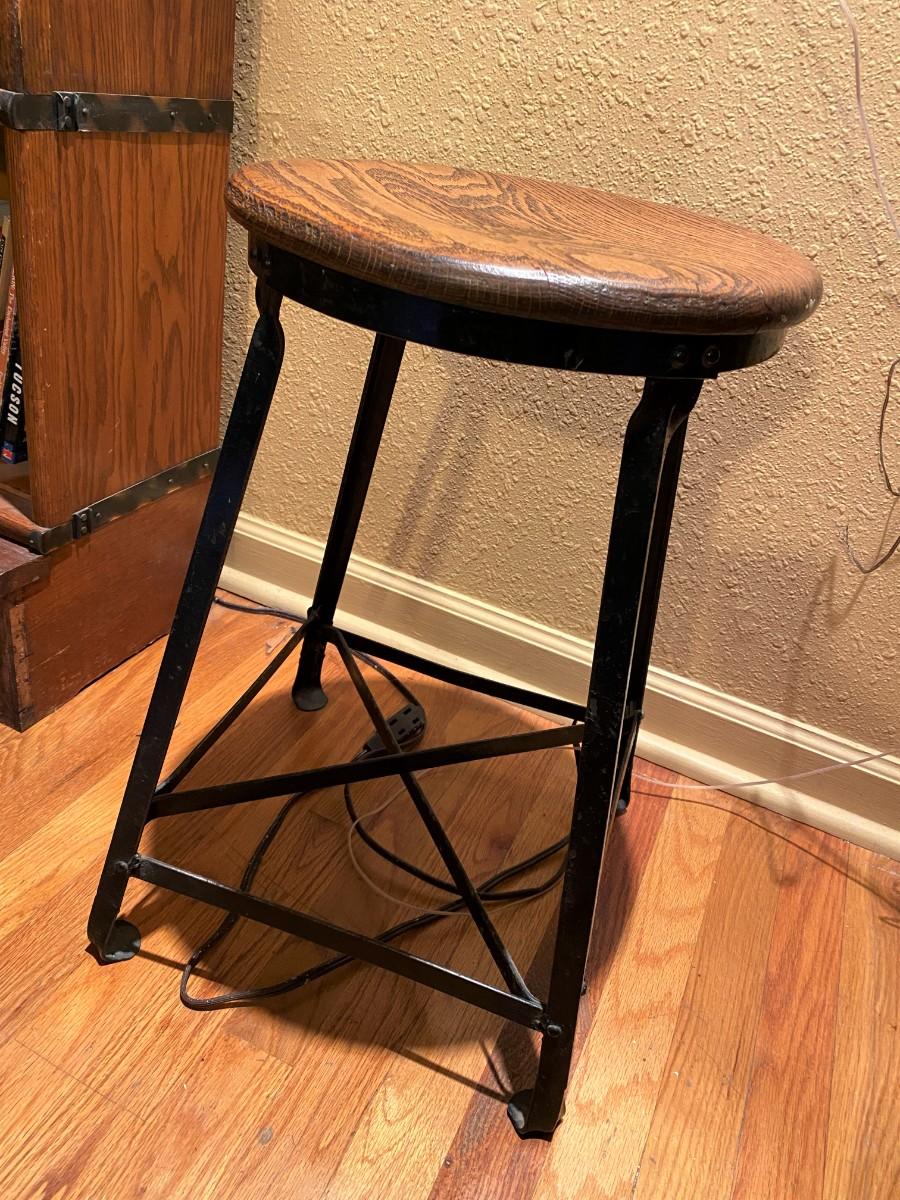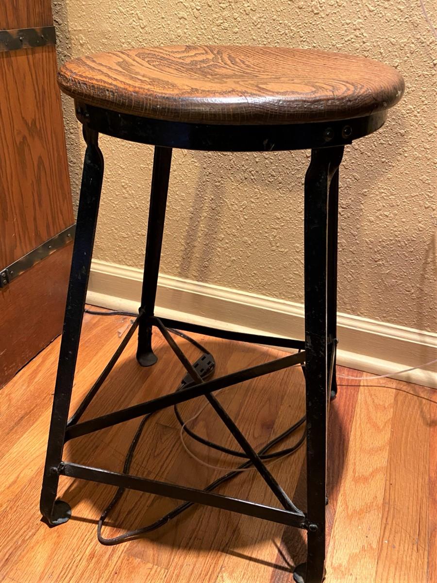 Antique Industrial Wood and Iron Stool