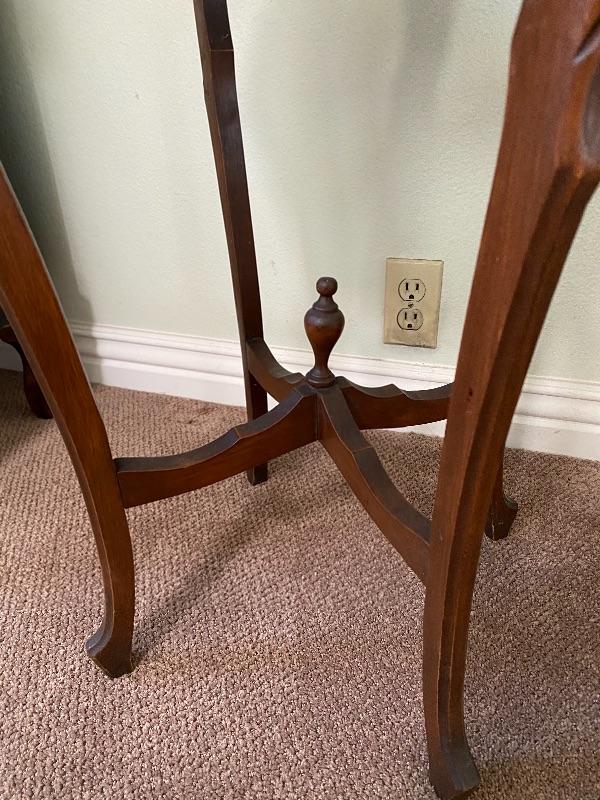 Antique Inlaid Carved Wood Side Table Plant Stand