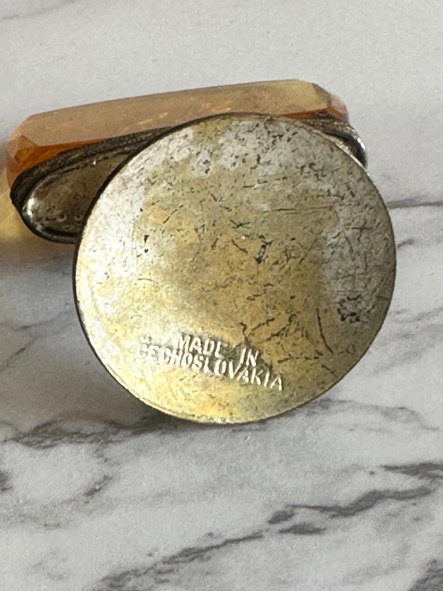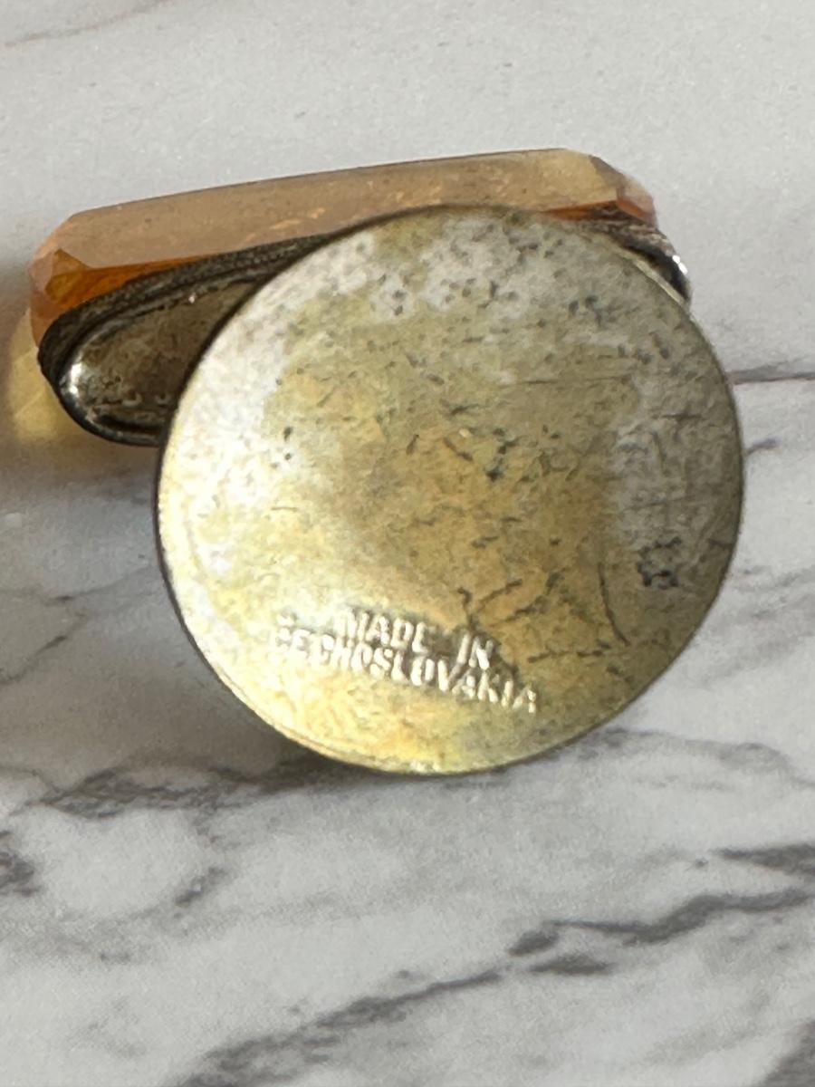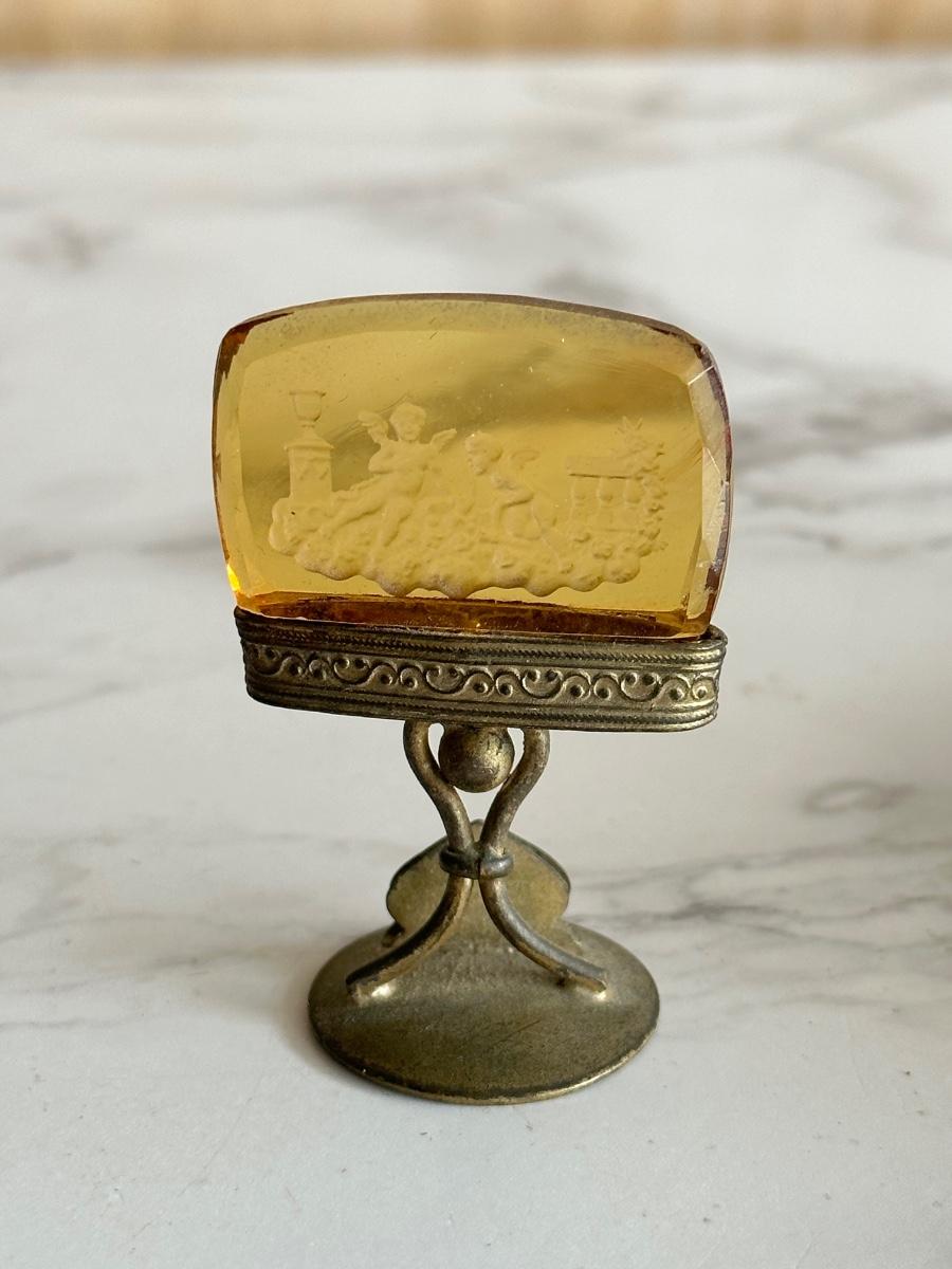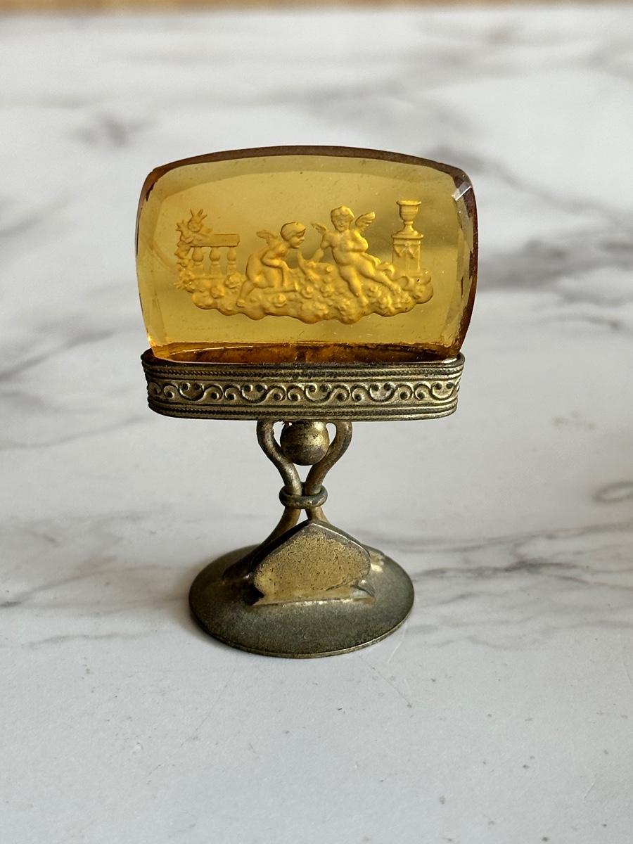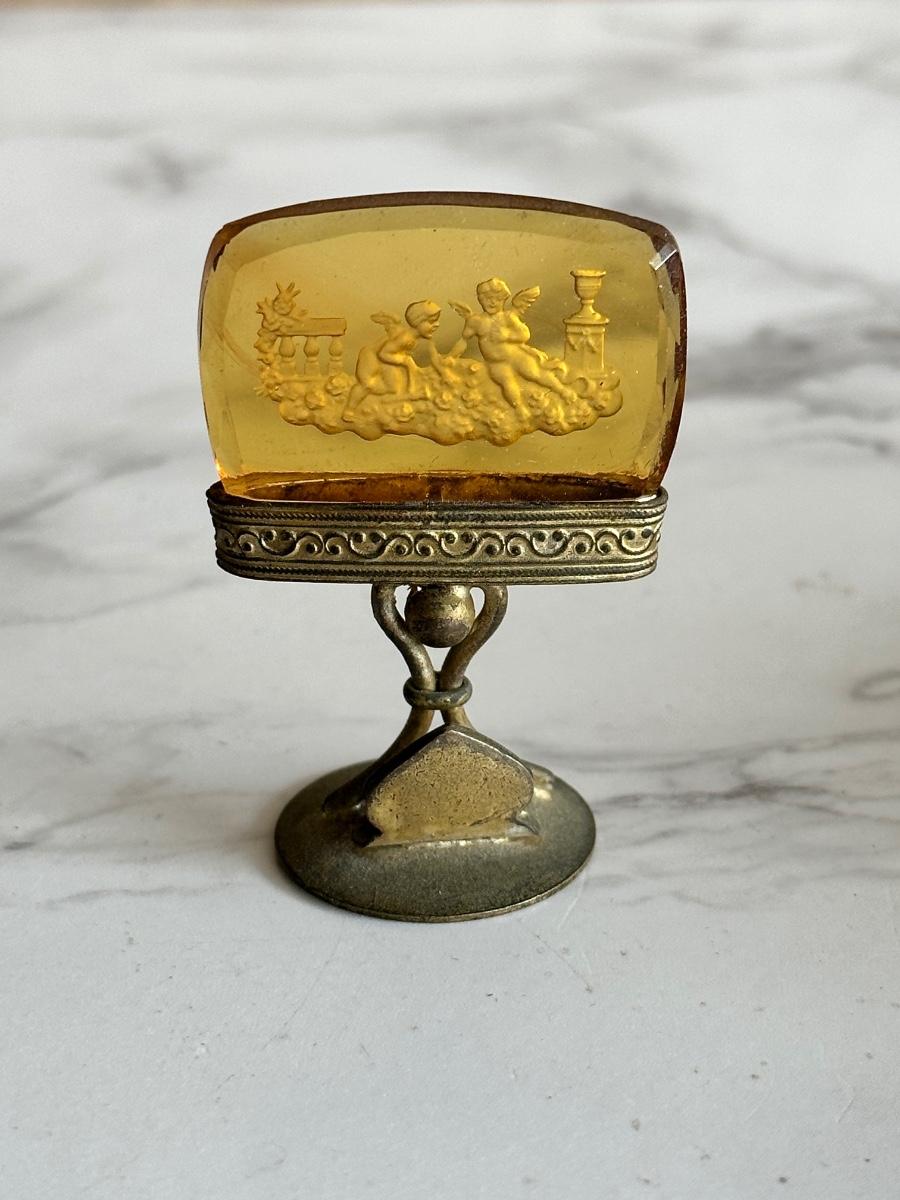 Antique Intaglio Czech Austrian Amber Glass Cherub Angel Card Holder