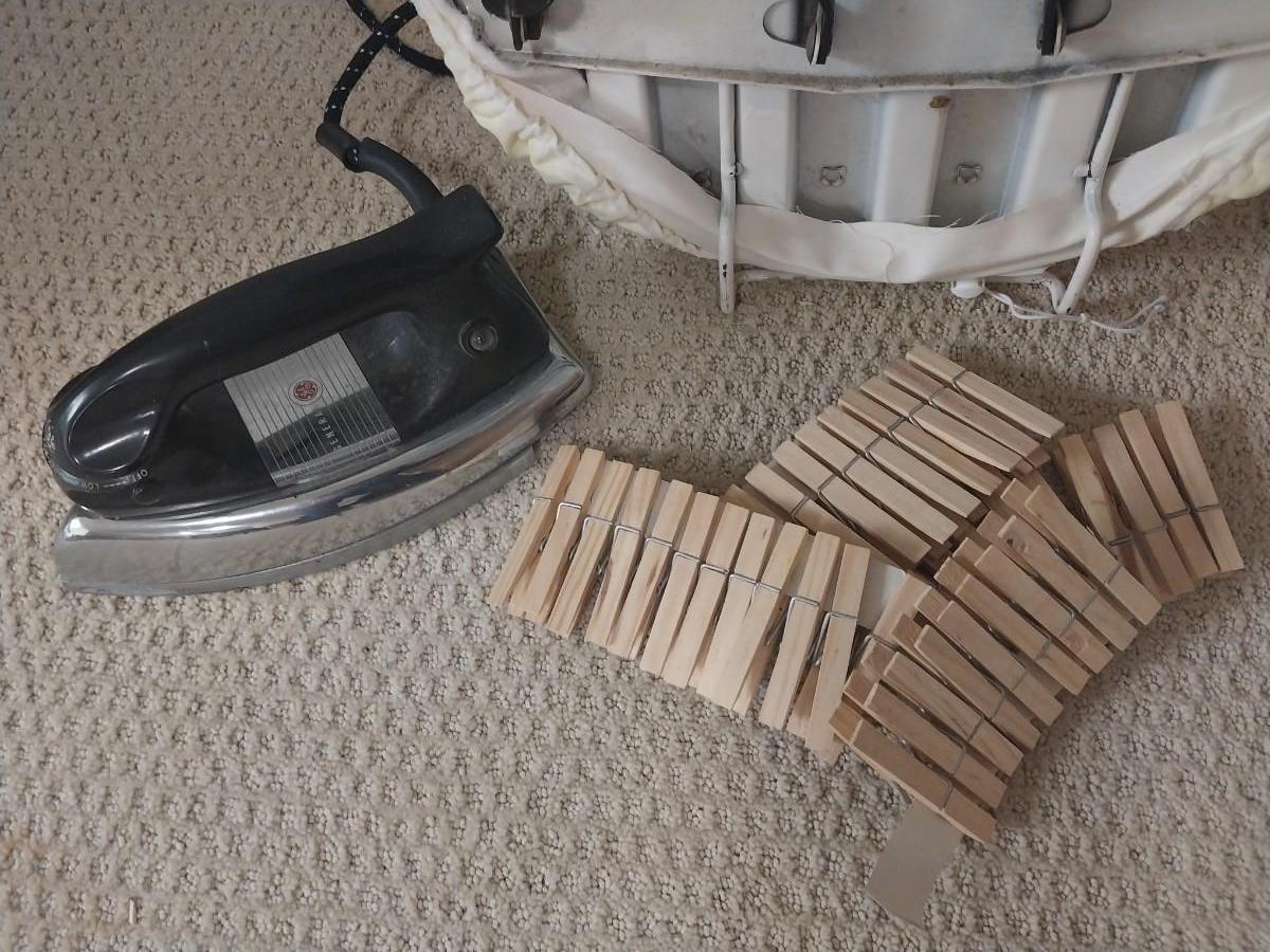 ANTIQUE IRONBOARDS AND WOODEN CLOTHESPINS