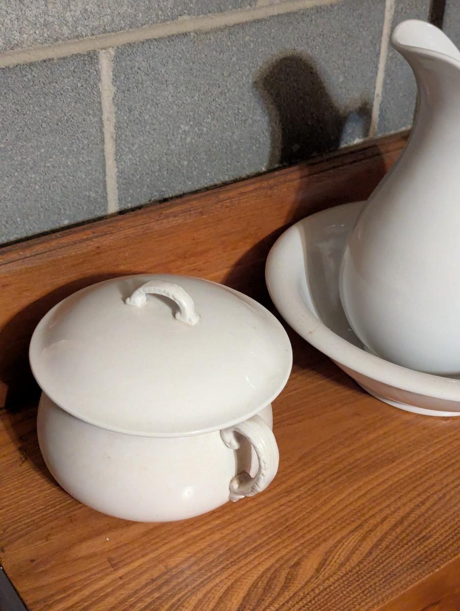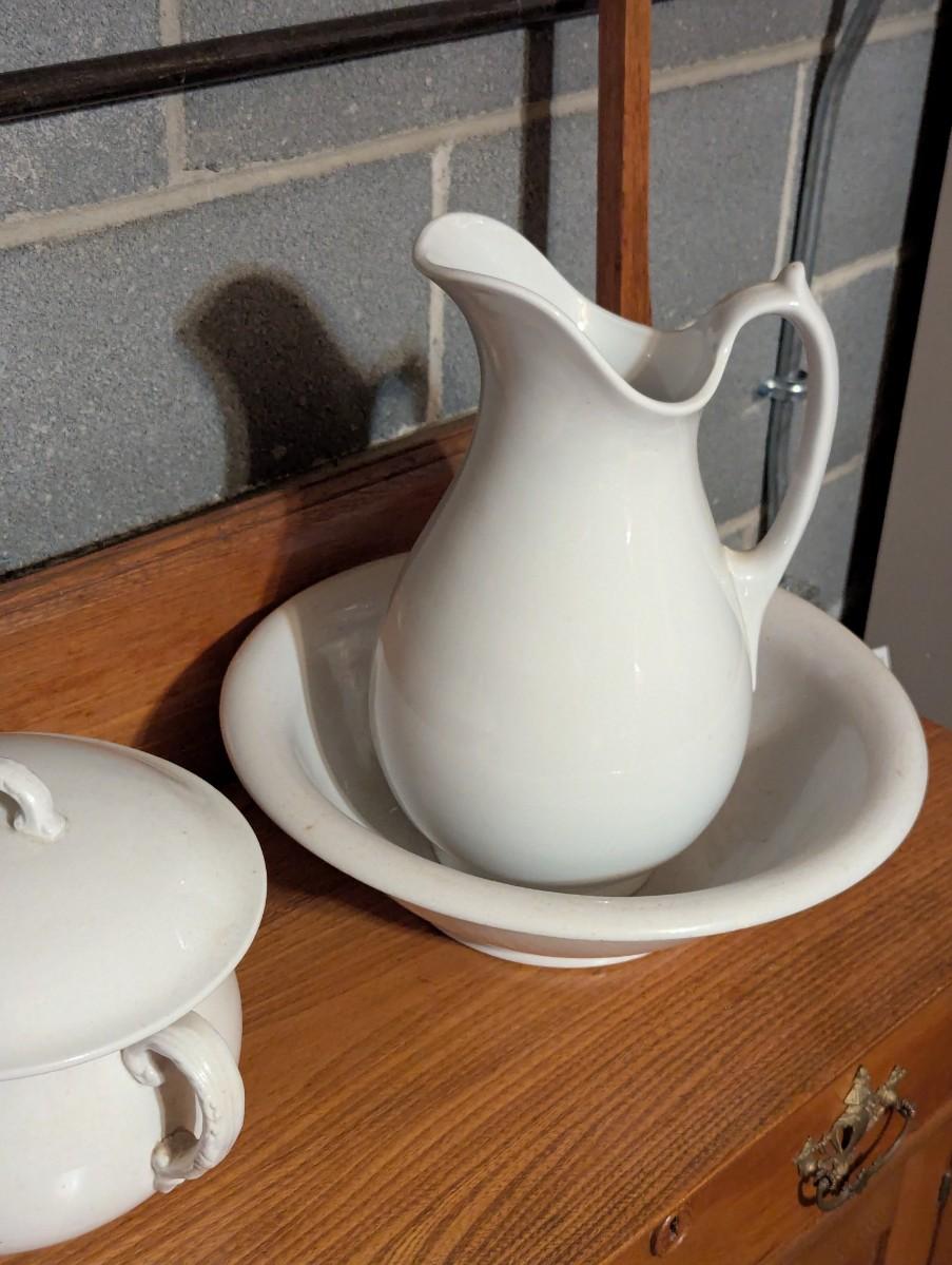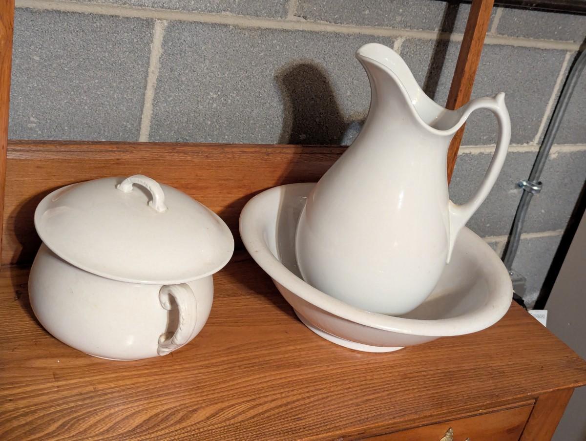 Antique Ironstone Dale & Davis & Ironstone J. Wedgwood Pitcher & Basin Antique Royal China International Chamber Pot White