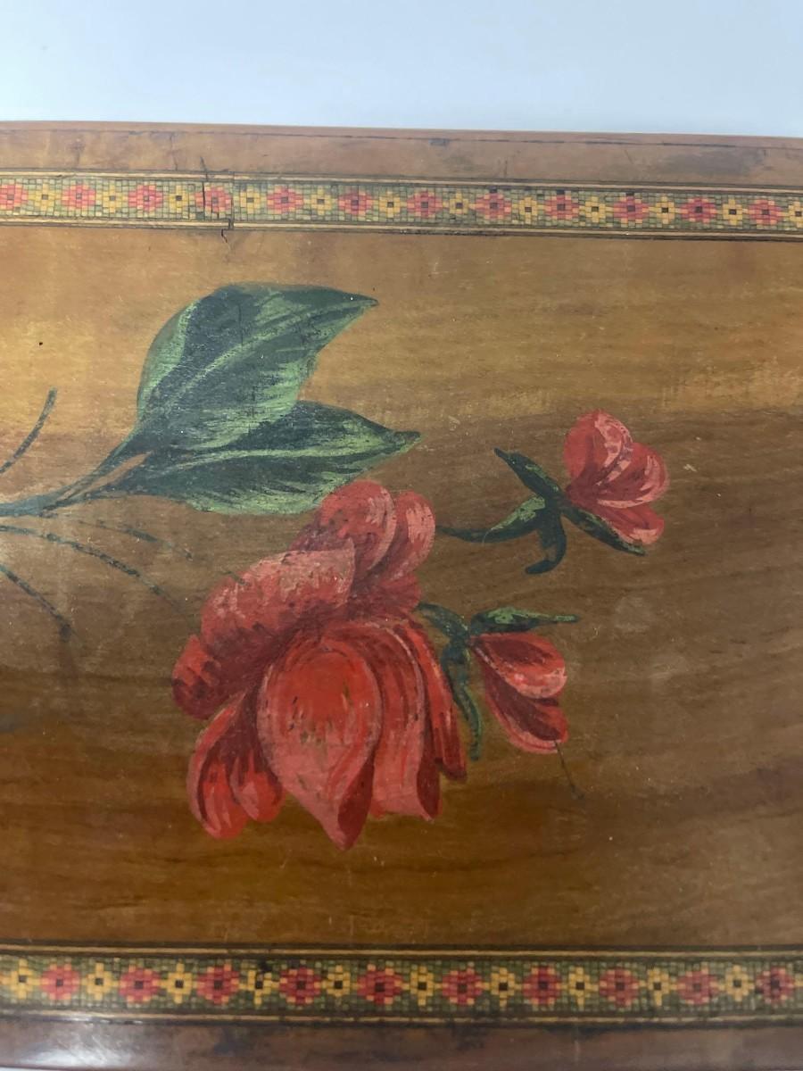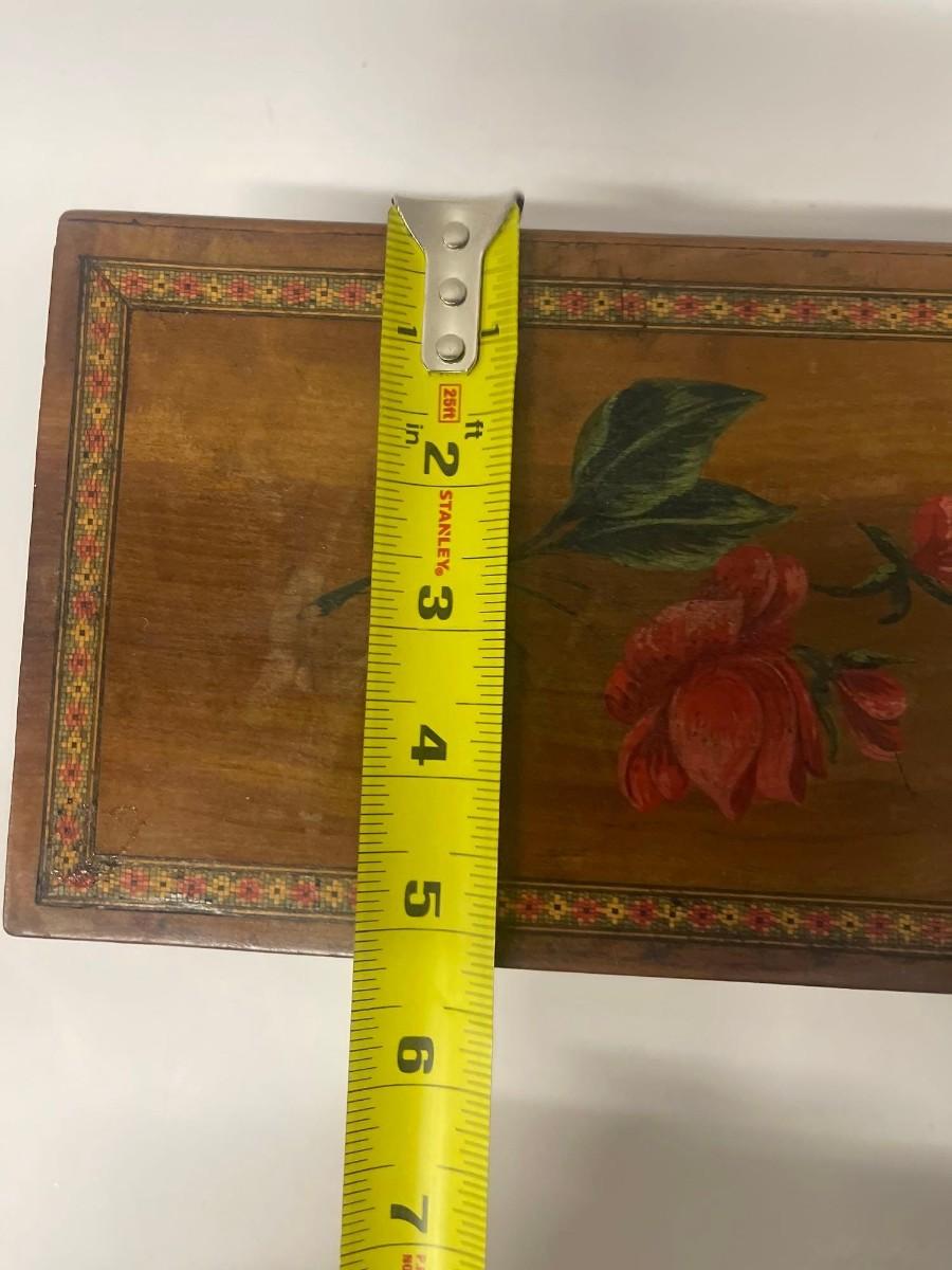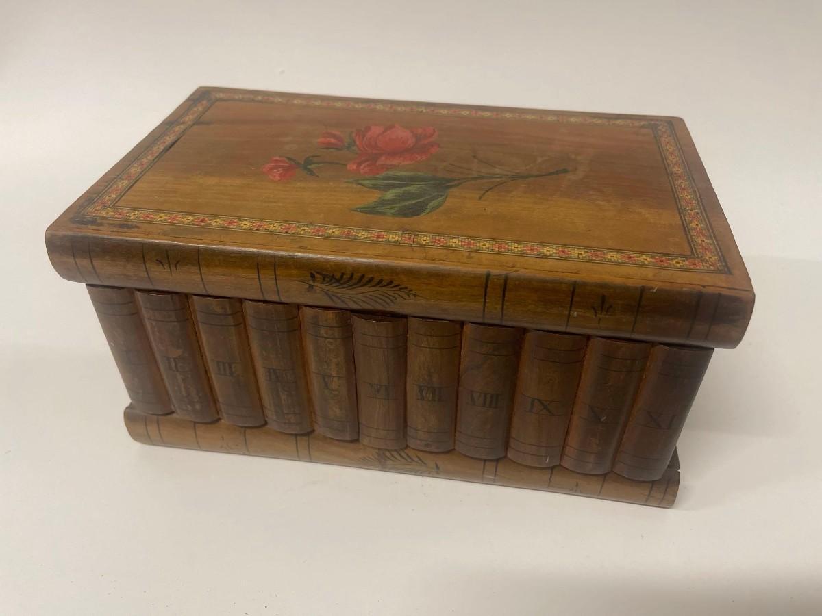 Antique Italian Sorrento Ware olive wood carved wood box, hand painted. Circa early 20th century.