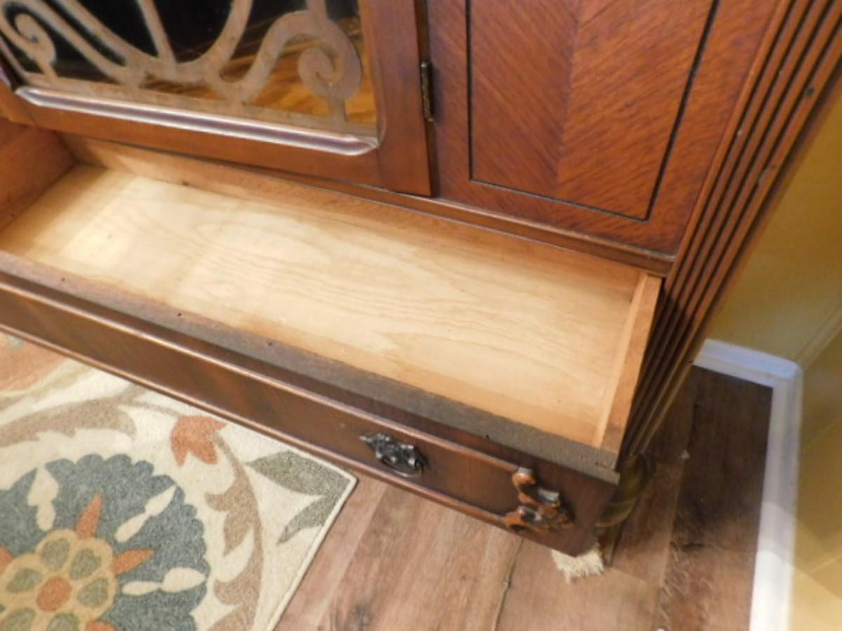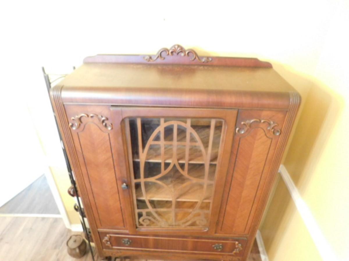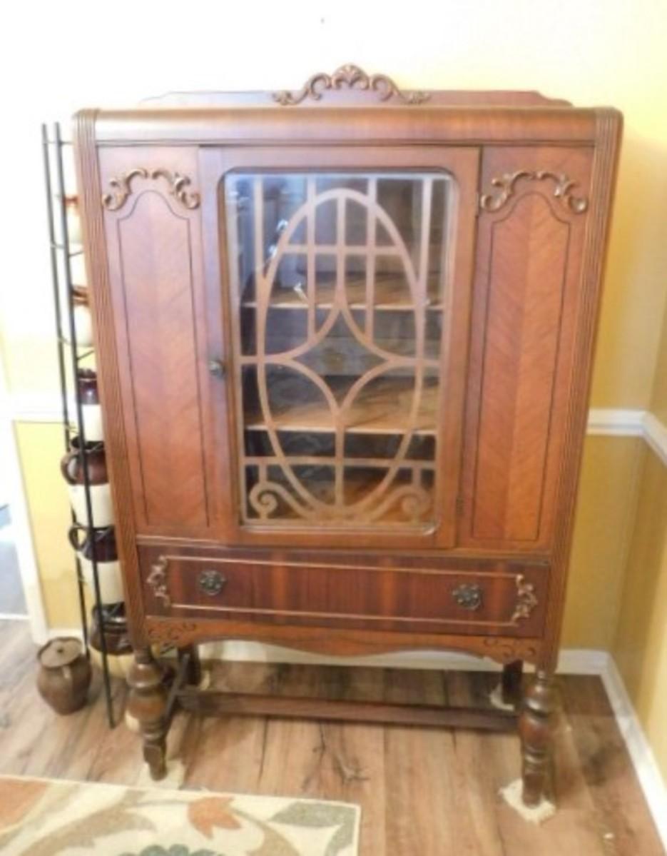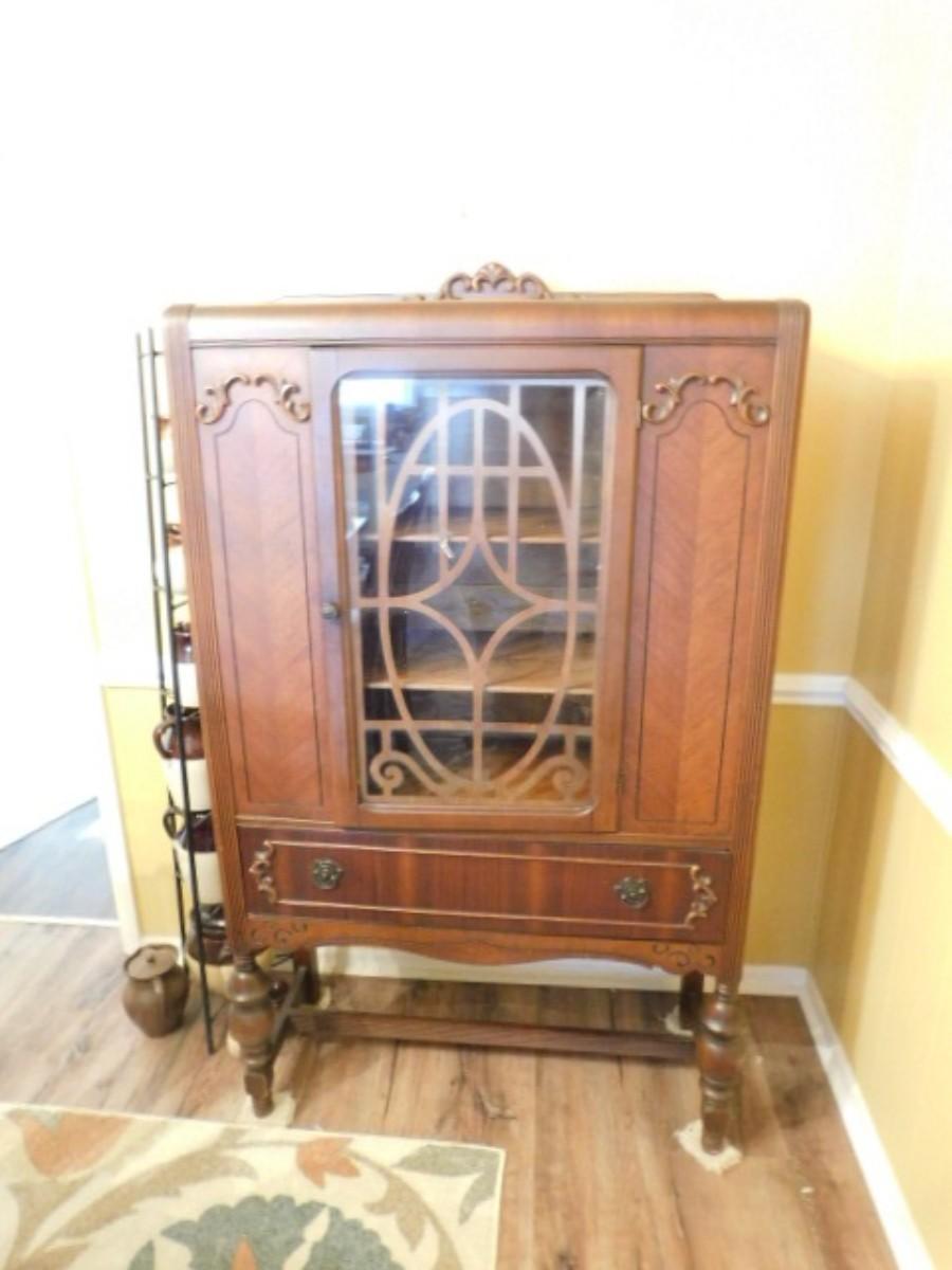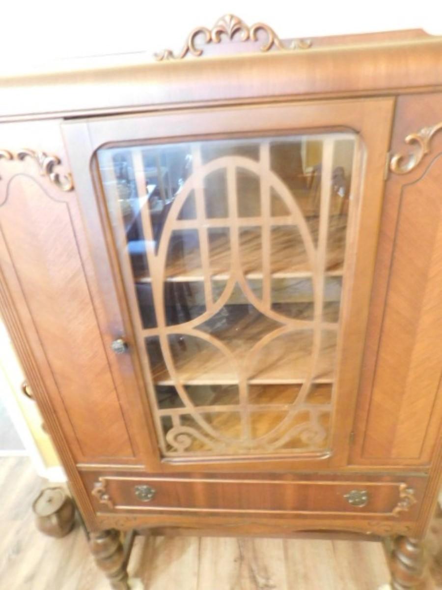 Antique Jacobean China Hutch Curio Cabinet with Glass Front and Fretting