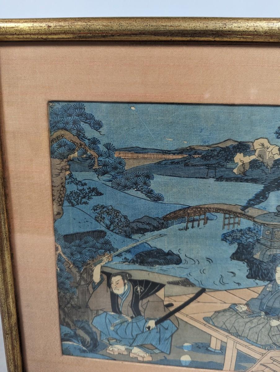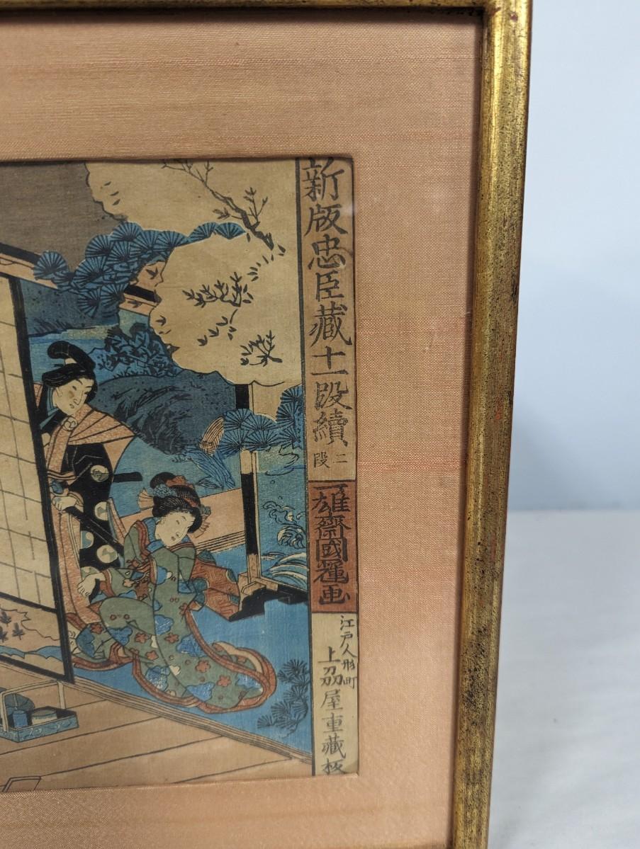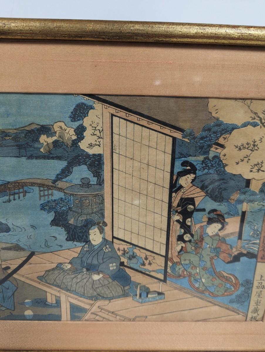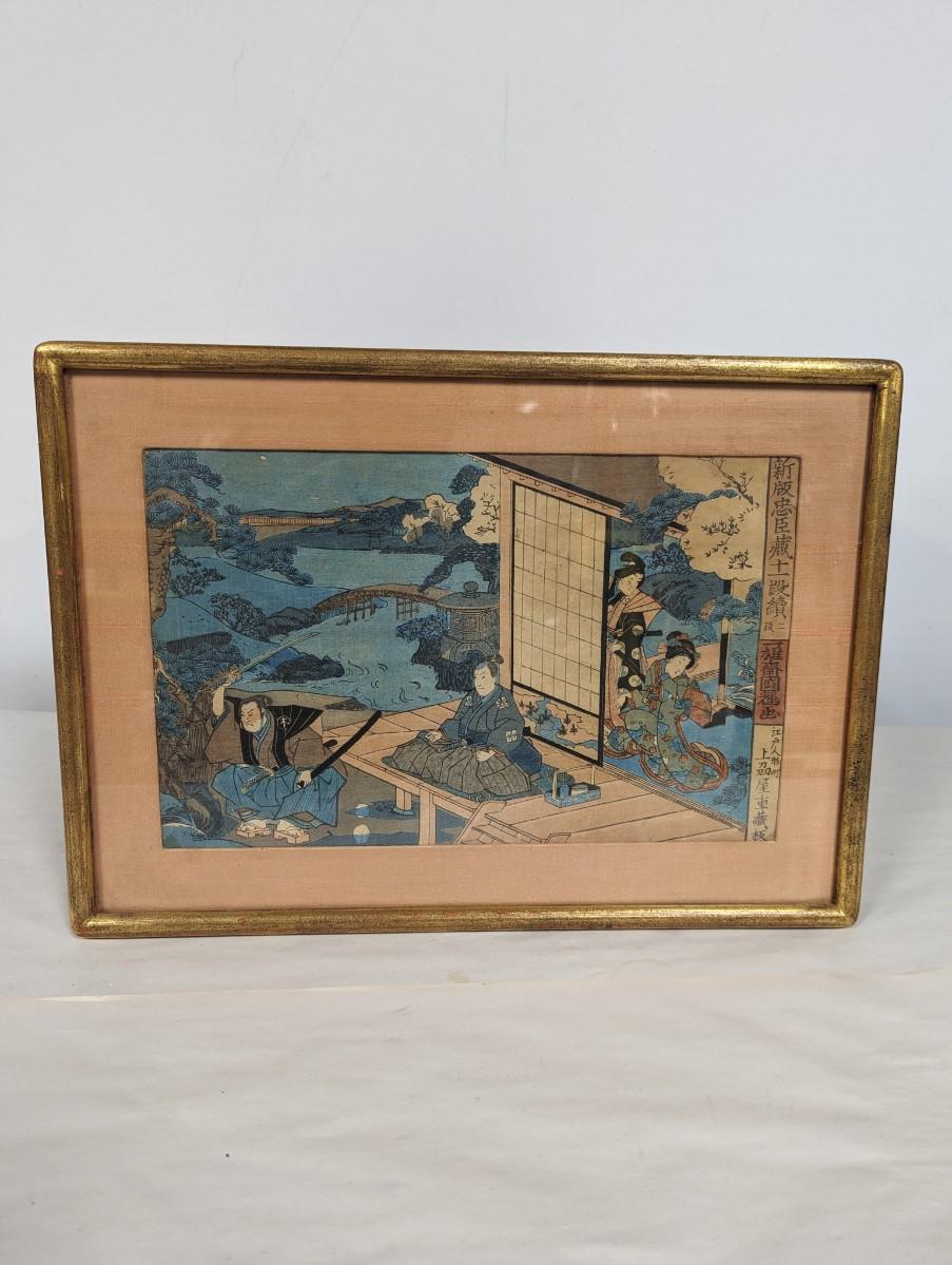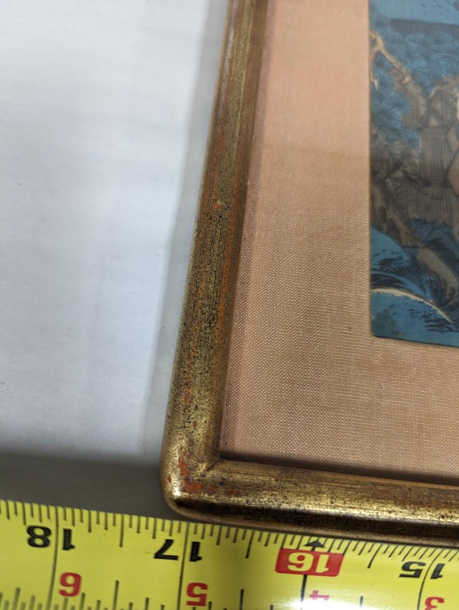Antique Japanese Framed Block Print Artwork 12 1/4" x 17 1/4"