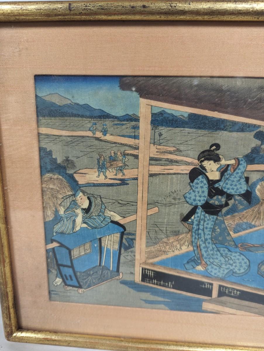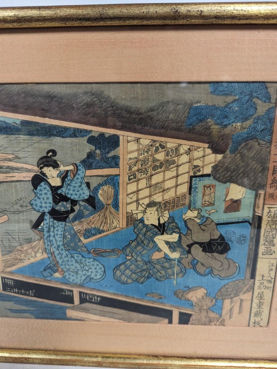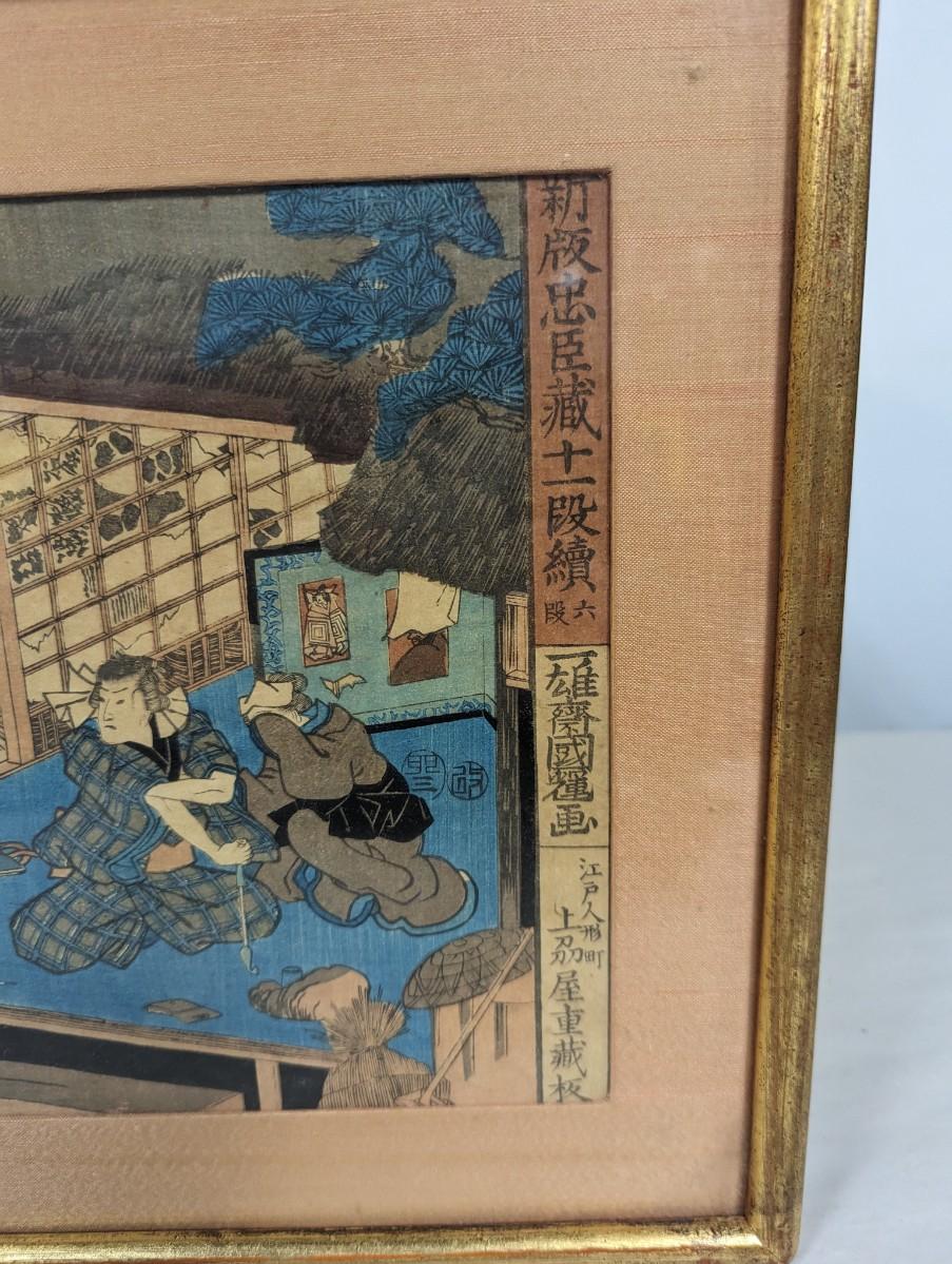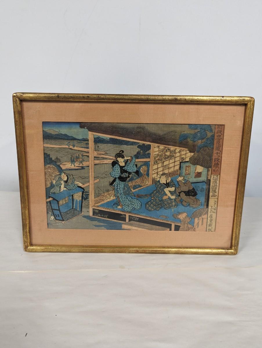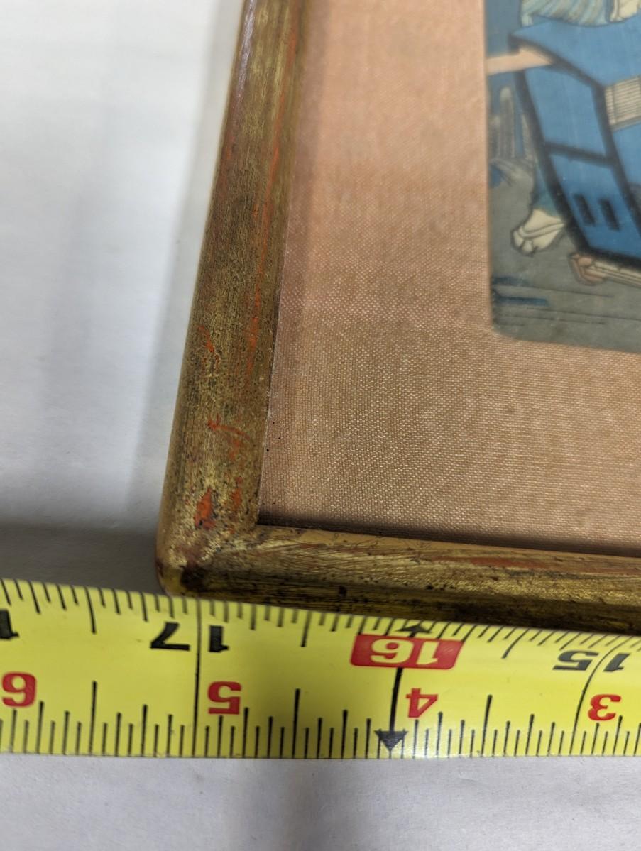 Antique Japanese Framed Block Print Artwork 12 1/4" x 17 1/4"
