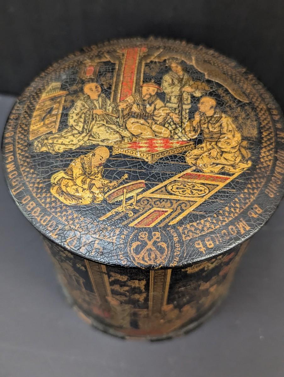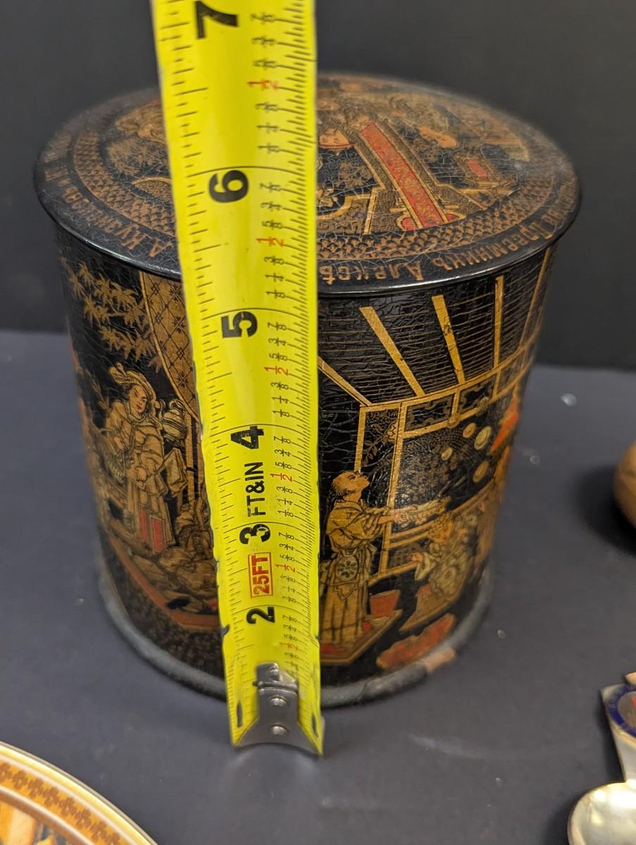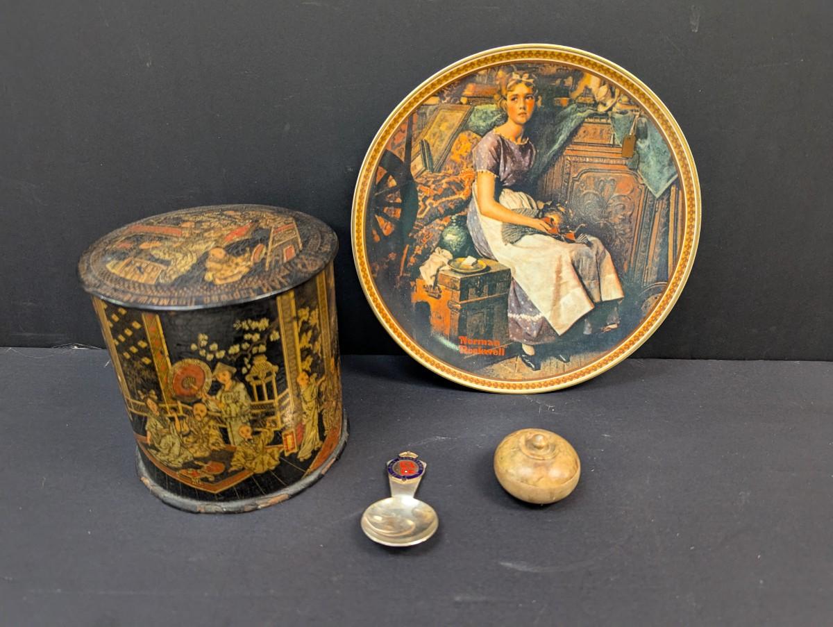 Oriental Paper Mache Tea Caddy - "Dreaming in The Attic" Norman Rockwell Plate First Edition - Trinket Box -Cunard White Star Shipping Line RMS Mauretania