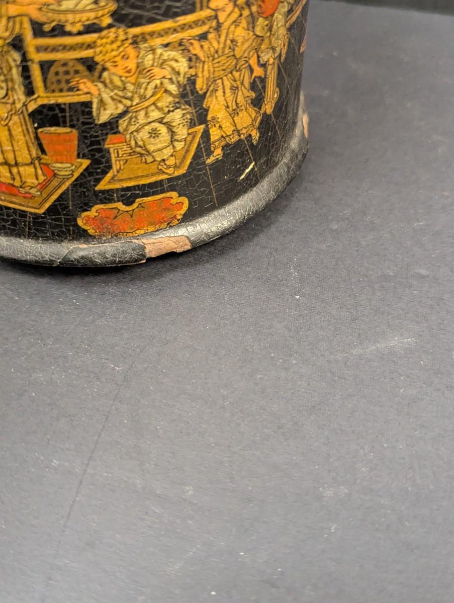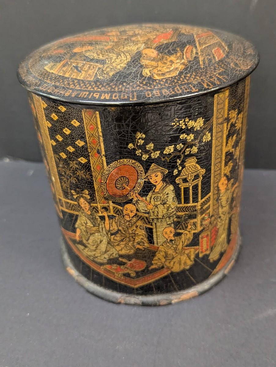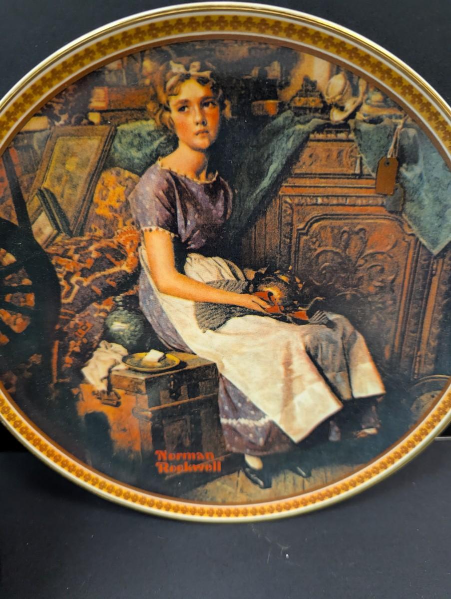 Oriental Paper Mache Tea Caddy - "Dreaming in The Attic" Norman Rockwell Plate First Edition - Trinket Box -Cunard White Star Shipping Line RMS Mauretania