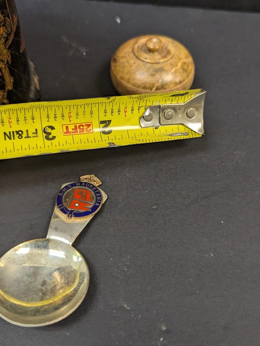 Antique Japanese Black Lacquer Box - "Dreaming in The Attic" Norman Rockwell Plate First Edition - Trinket Box -Cunard White Star Shipping Line RMS Mauretania Spoon