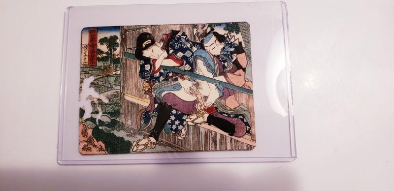 An Original Antique Erotic Shunga Japanese woodblock print titled" Best Places for sweet Meetings" Nintheenth Century Priod. In good condition excpt for some hole cutout at left side(white cutout) But still amazing.