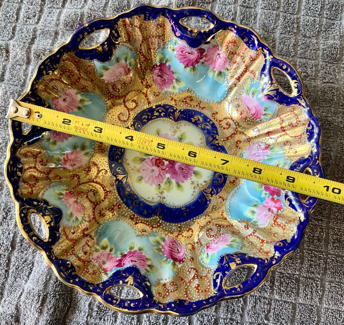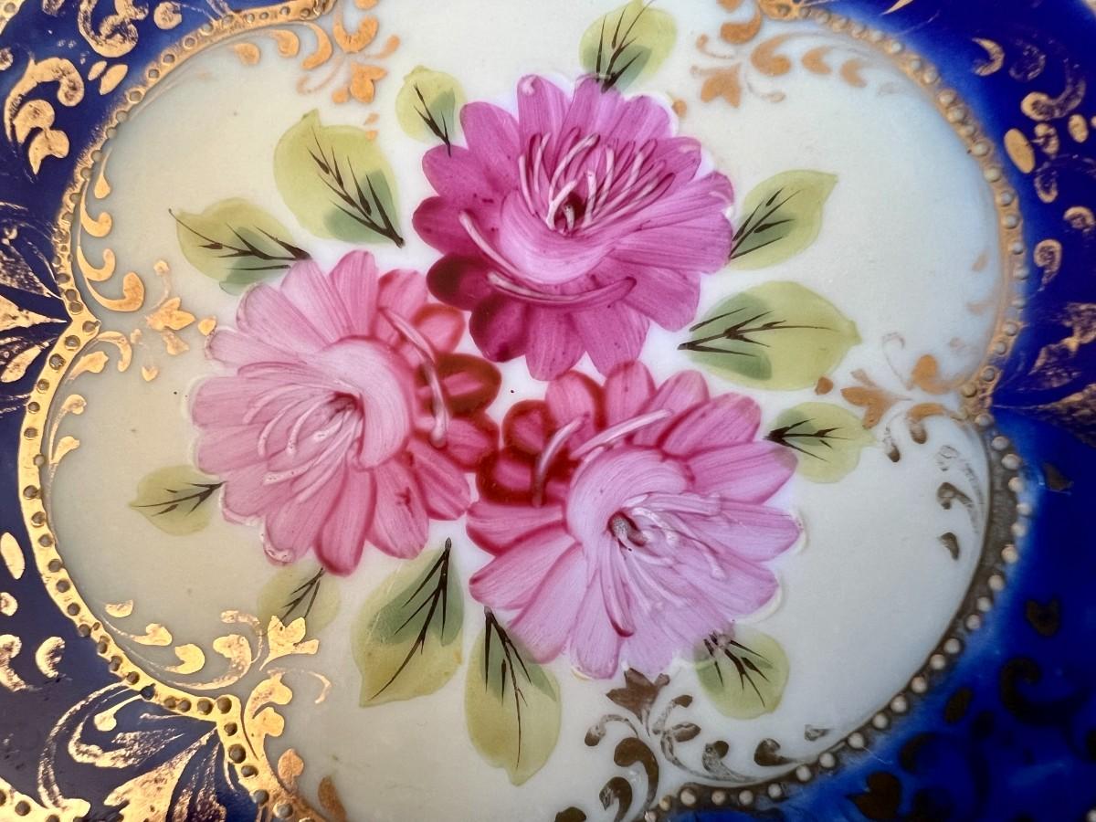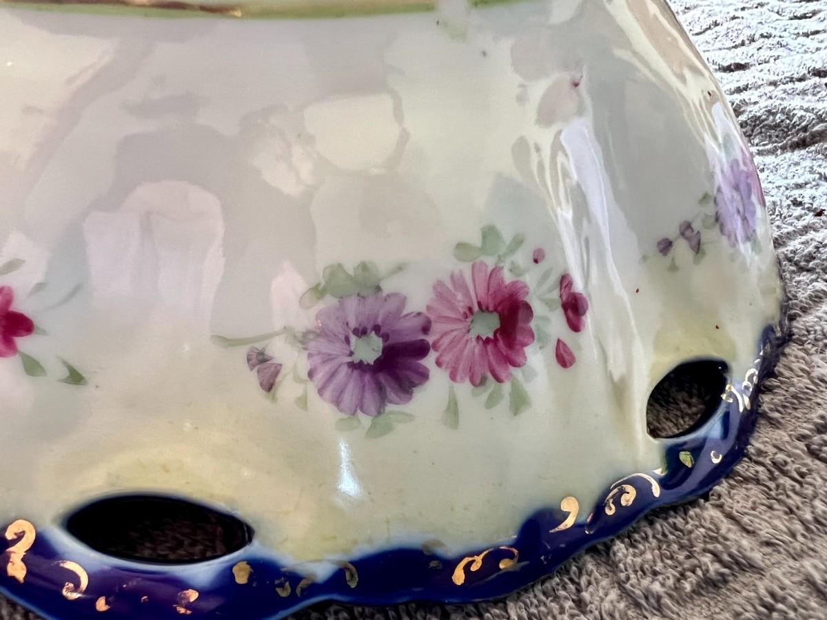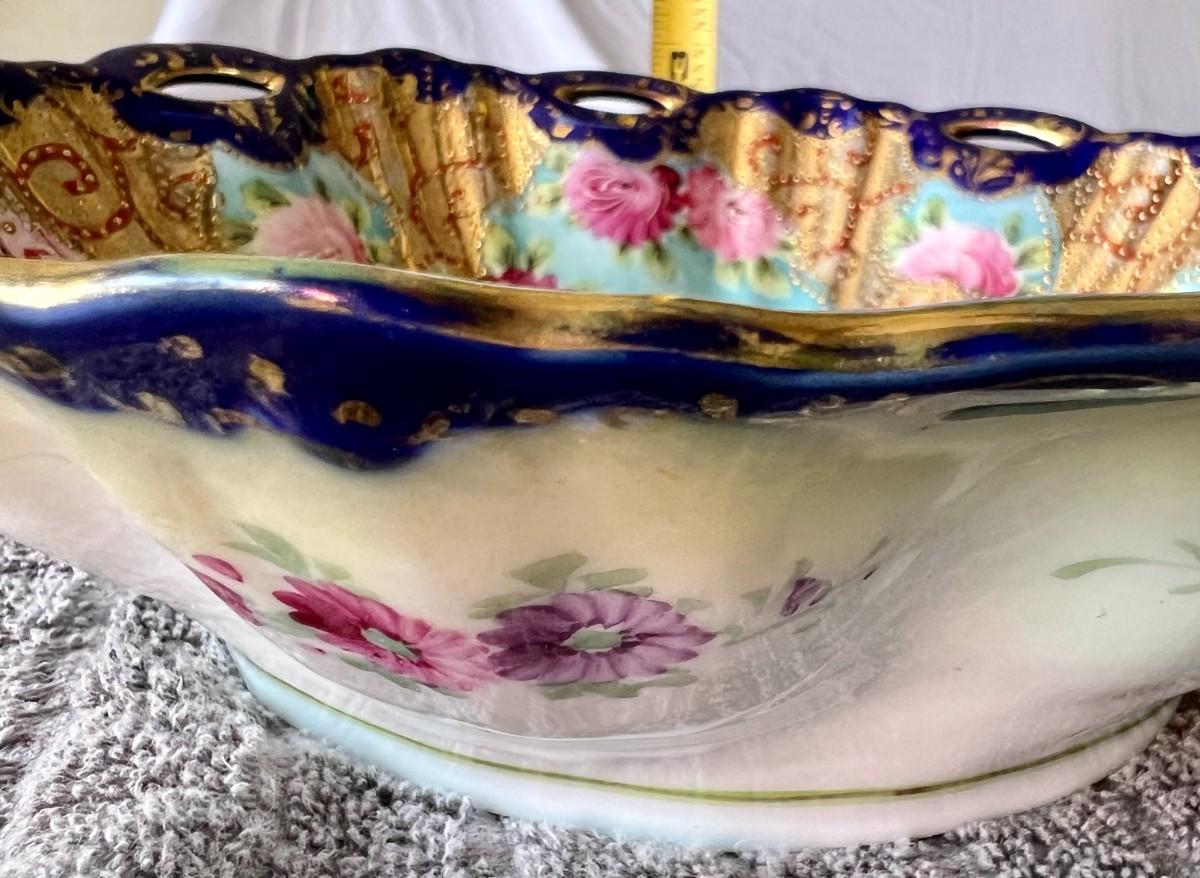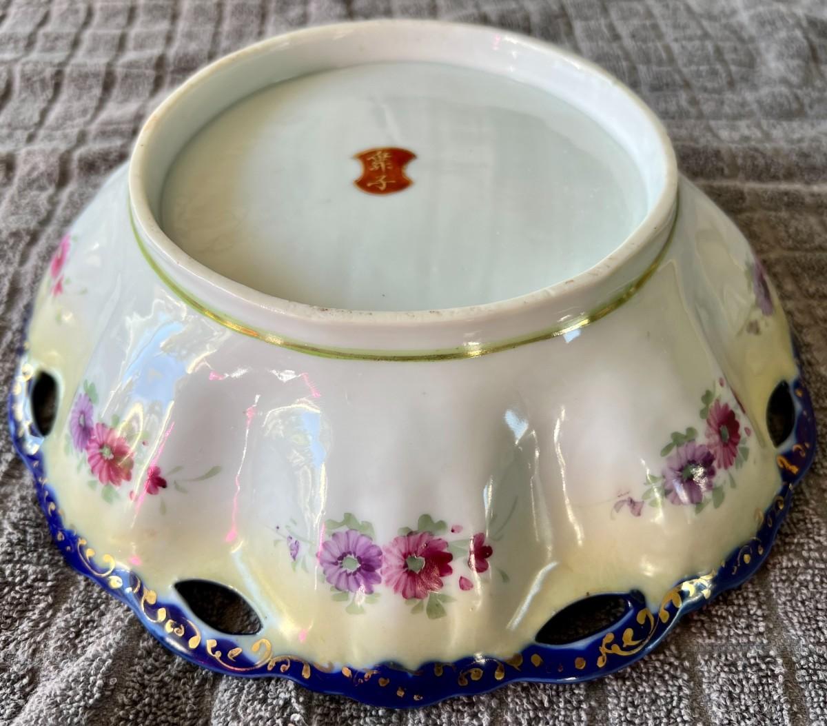 Antique Japanese Porcelain Chrysanthemum Gold Moriage Cobalt Blue Bowl 10" Inches