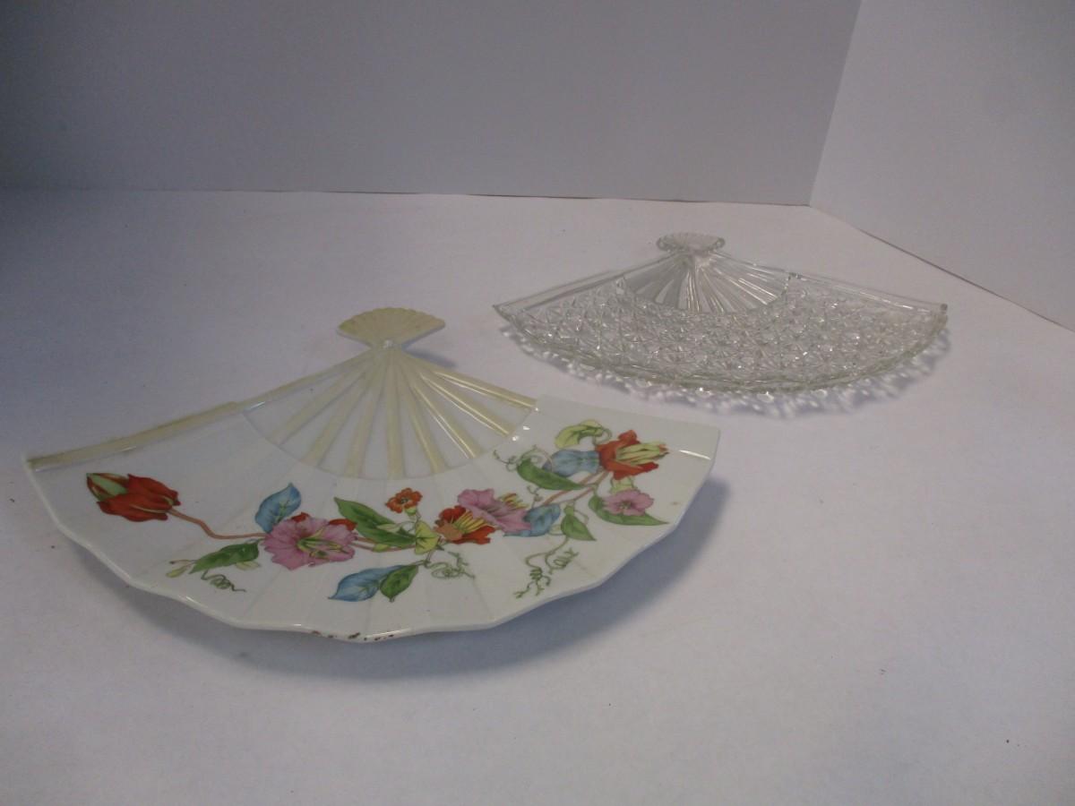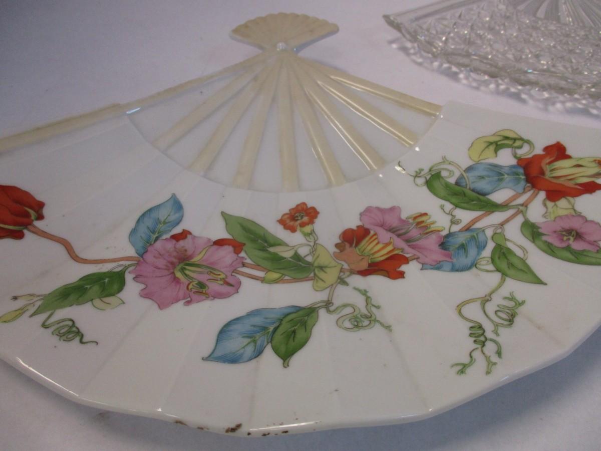 Antique Japanese Satsuma & Crystal Fan Shape Dishes