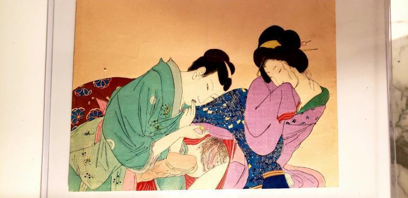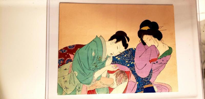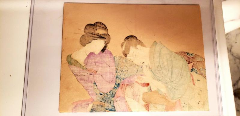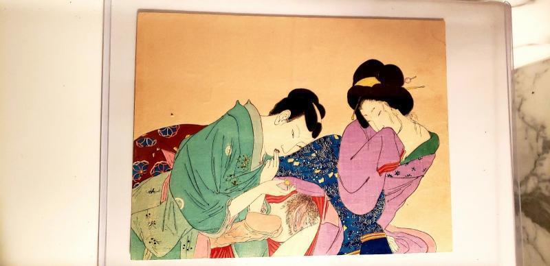 Meiji Period (1868-1912) wonderful in coloration and details this is an Original Antique Shunga Woodblock print.