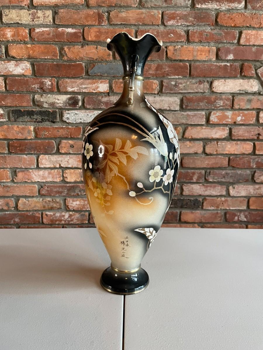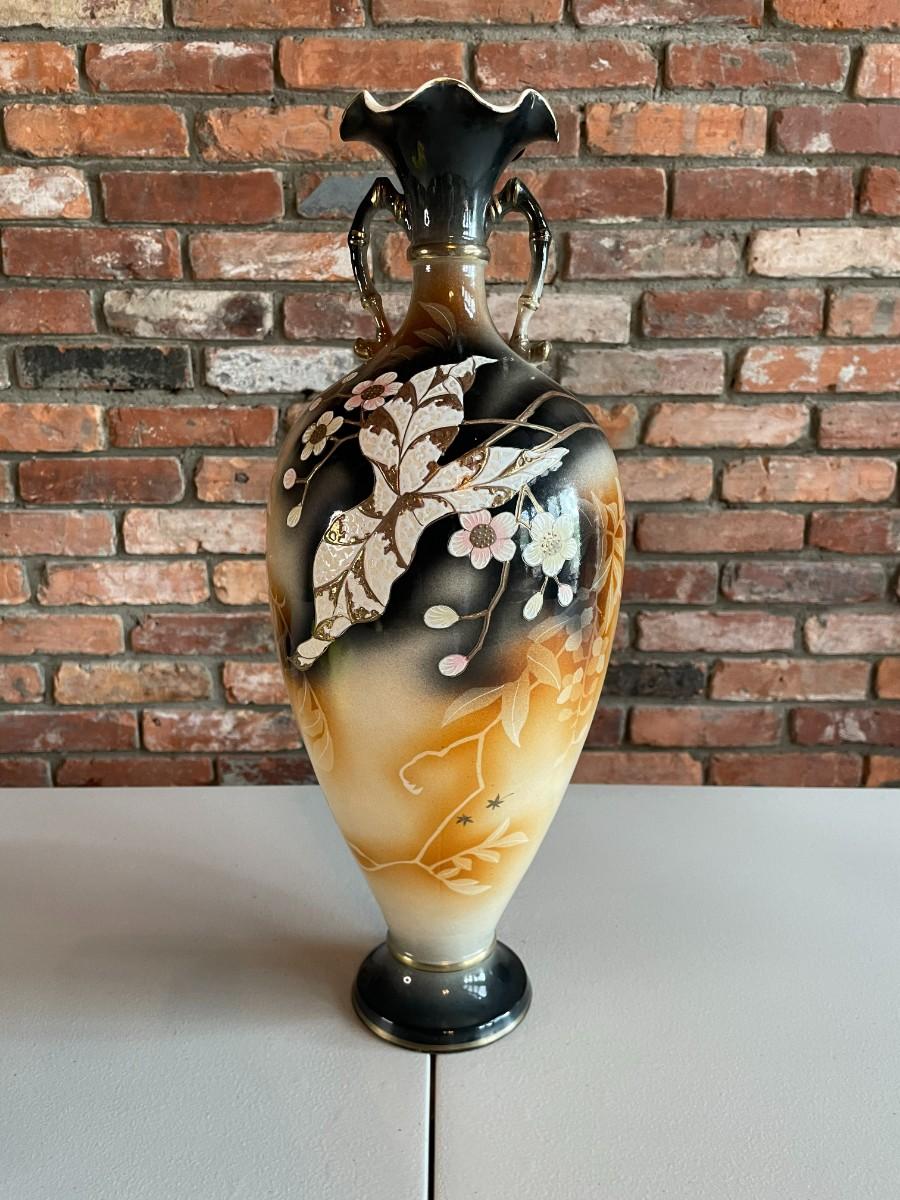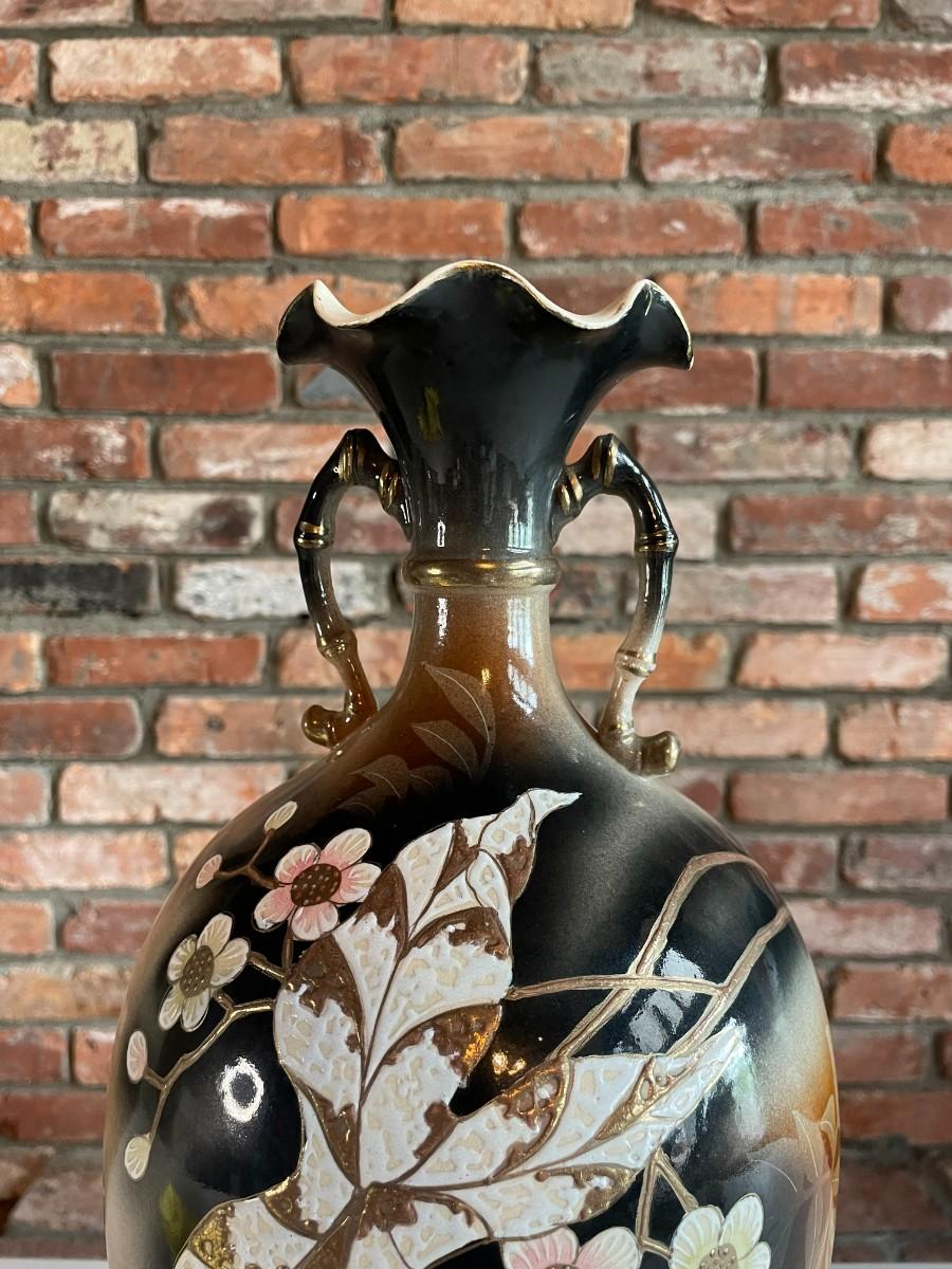 Primarily black and gold with beautiful floral design. 7w x 18 1/2h