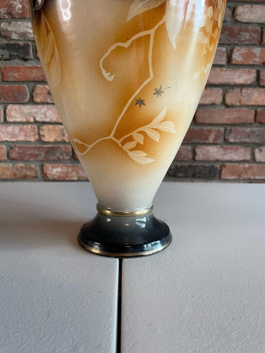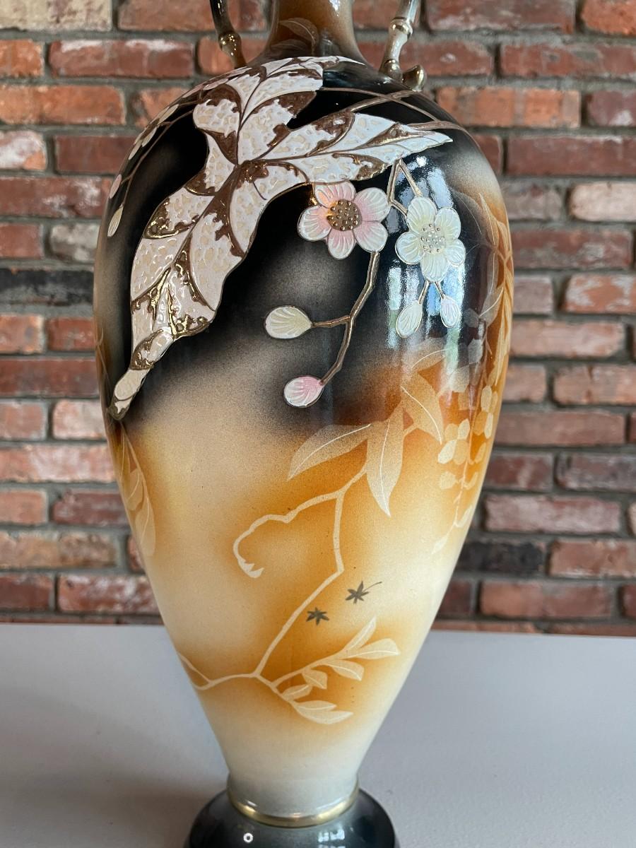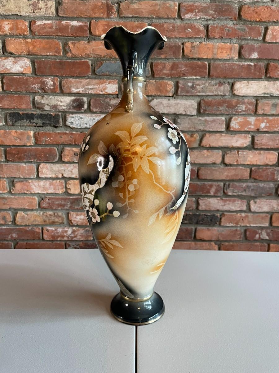 Primarily black and gold with beautiful floral design. 7w x 18 1/2h