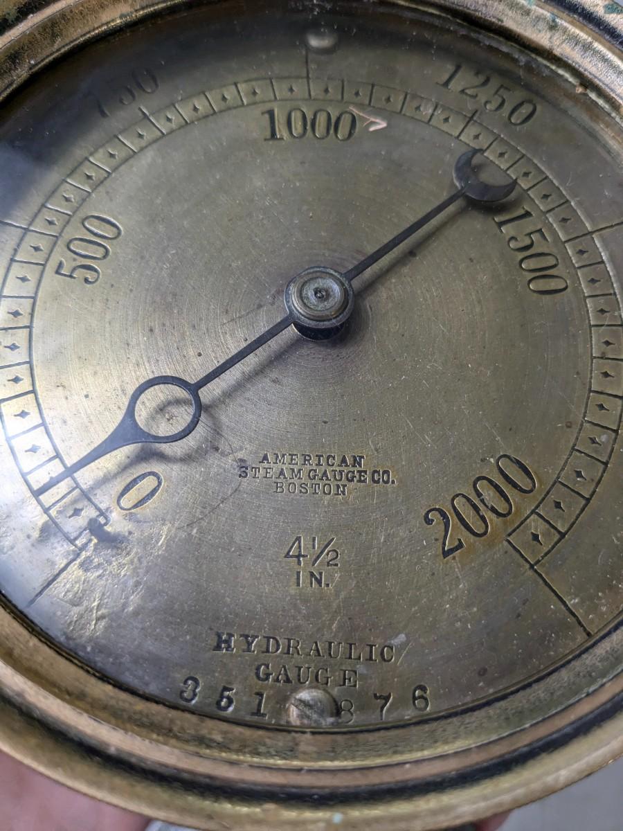 American gauge is in a gorgeous brass housing and face.