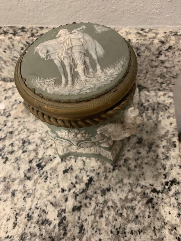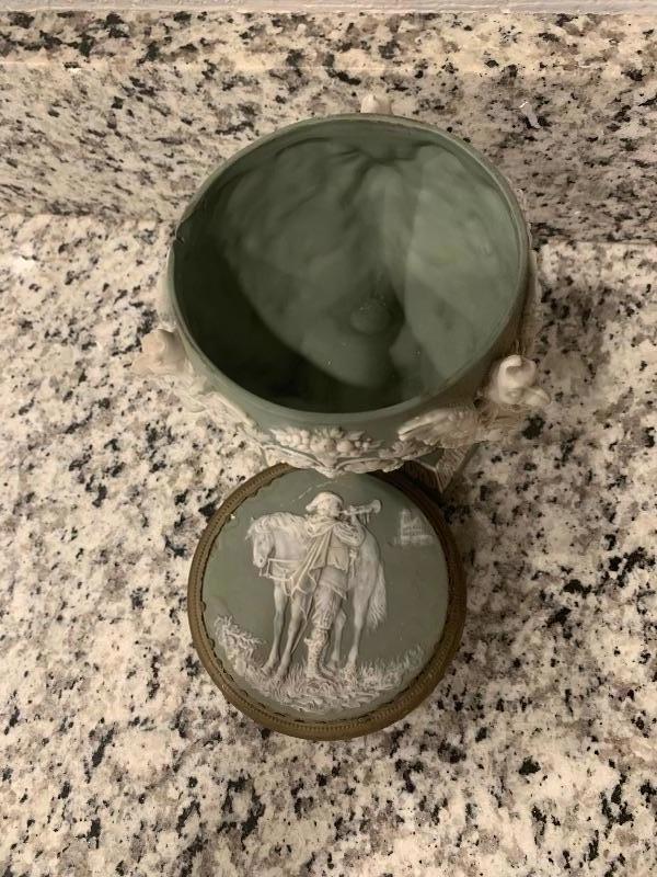 Antique jasper Ware Gryphon Covered Urn Extremely Rare