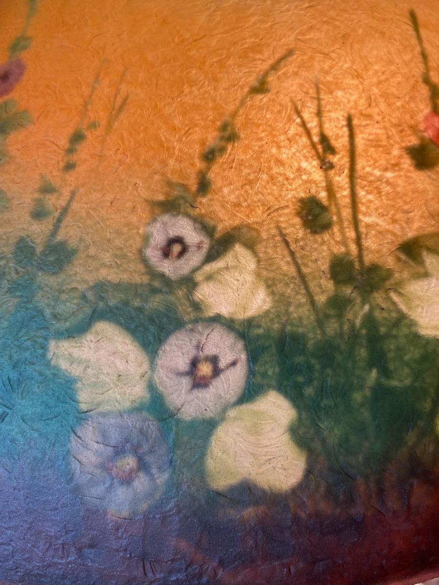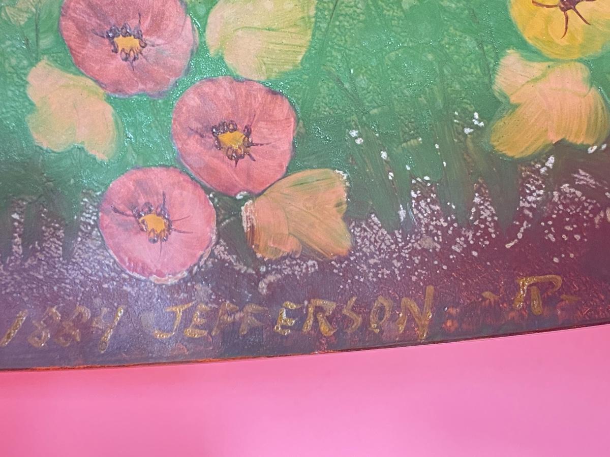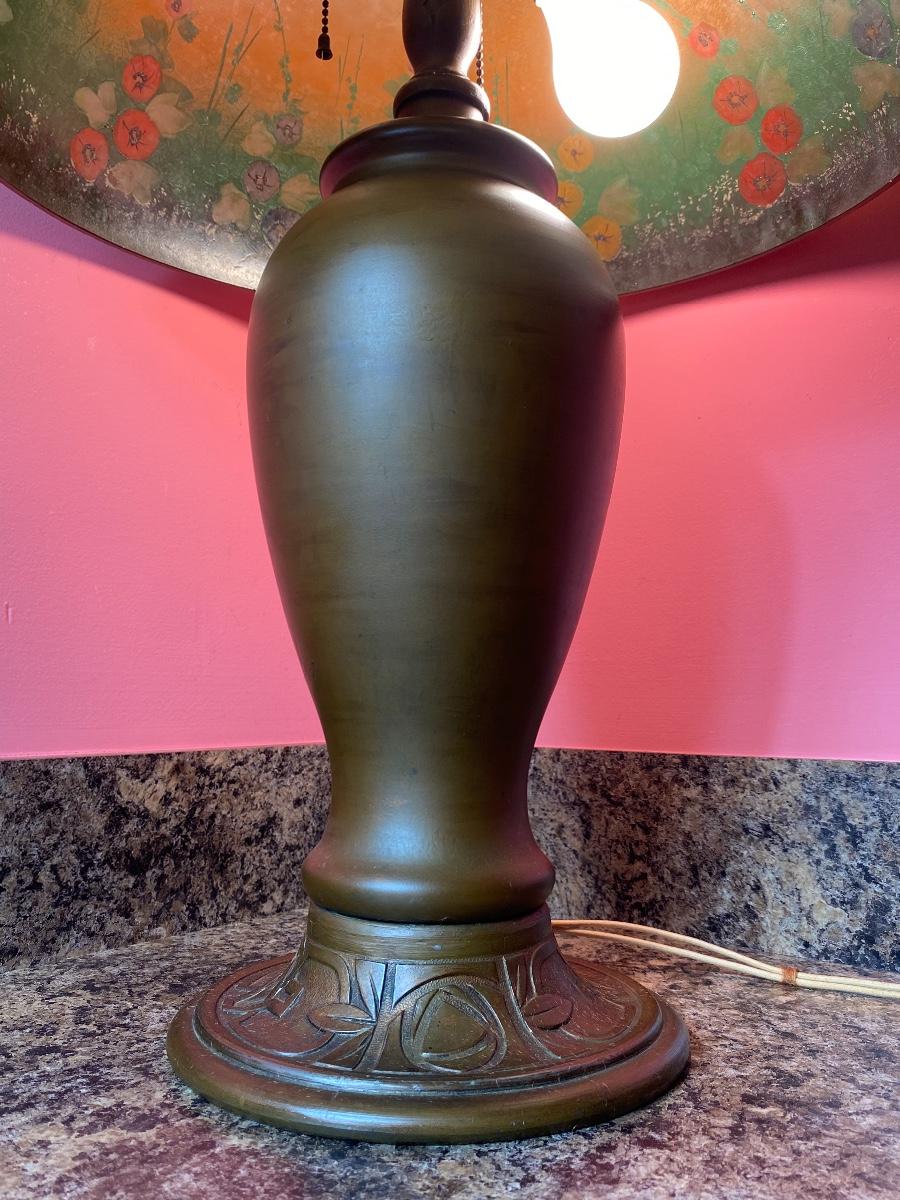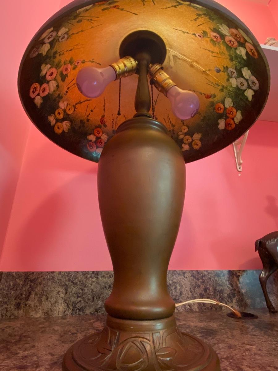 Antique Jefferson 1884 Jefferson Hollyhock Reverse Painted Shade & Lamp (damage)