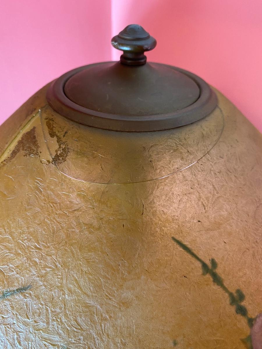 Crack in shade. May be able to have a professional glass artisan secure it. This is a stunning lamp and it deserves some love.