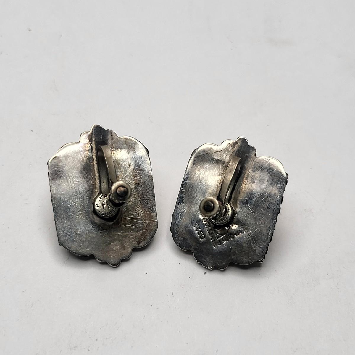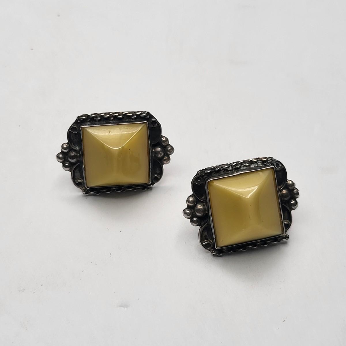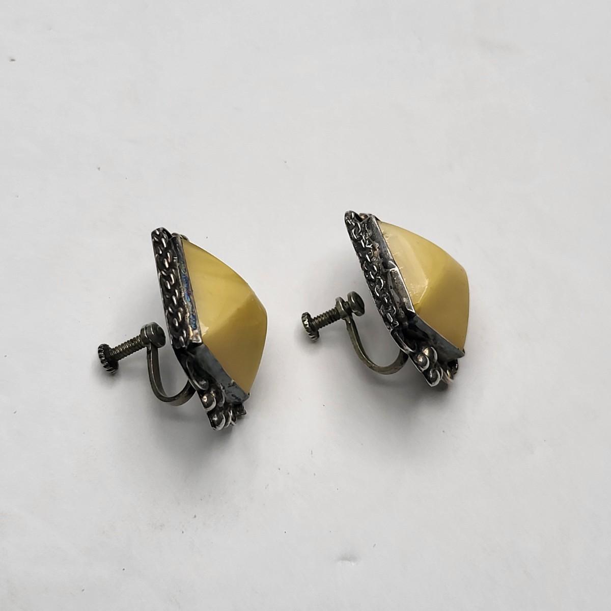 Sterling & yellow stone screwback earrings Mexico, 1" x 1".