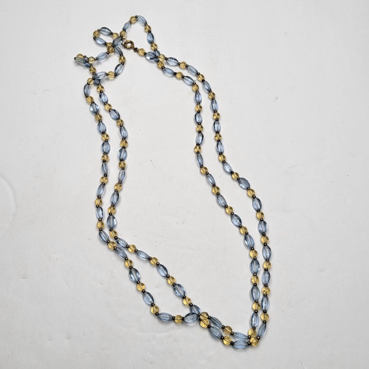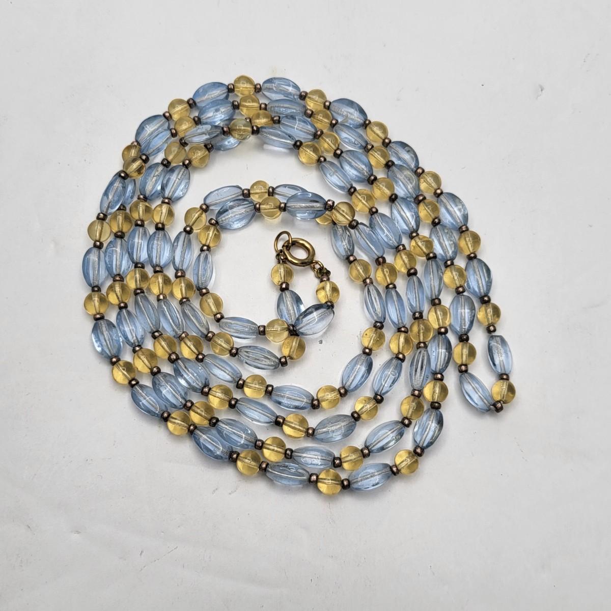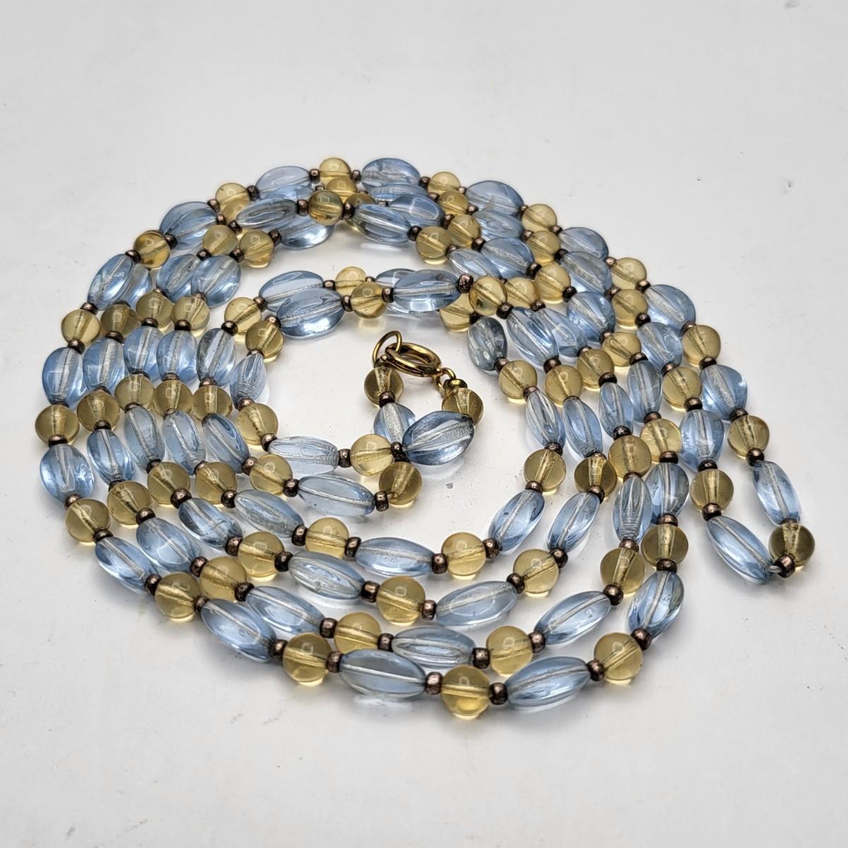 Germany pale blue & yellow glass bead single strand necklace, 54".