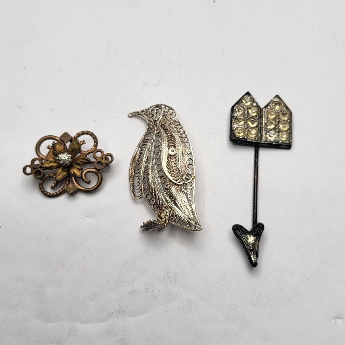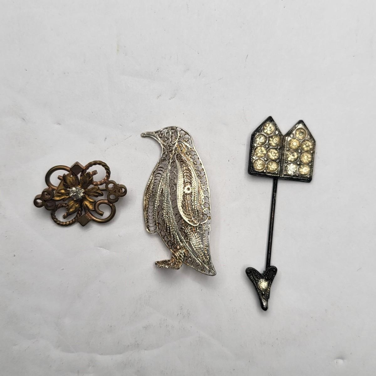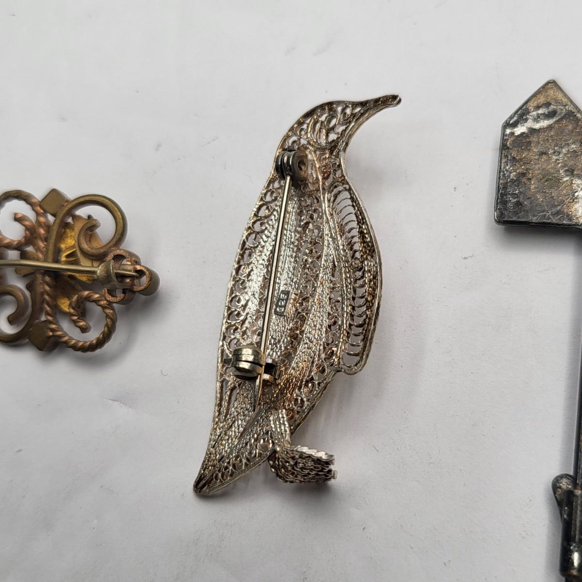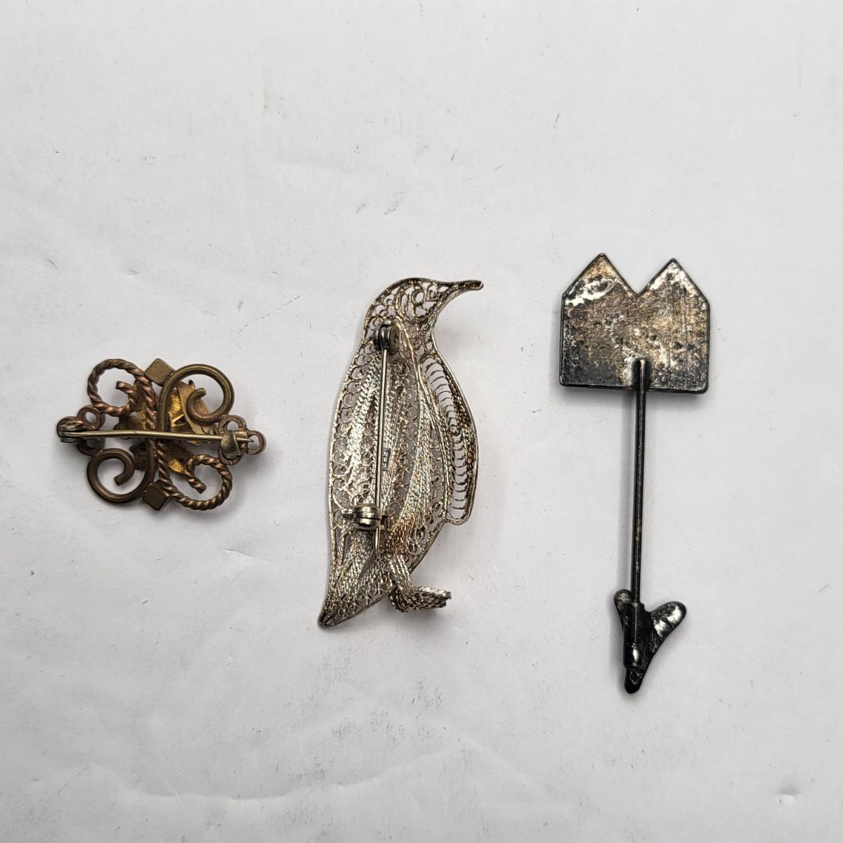 Sterling silver (.925) filigree penguin pin, 2" x 3/4".