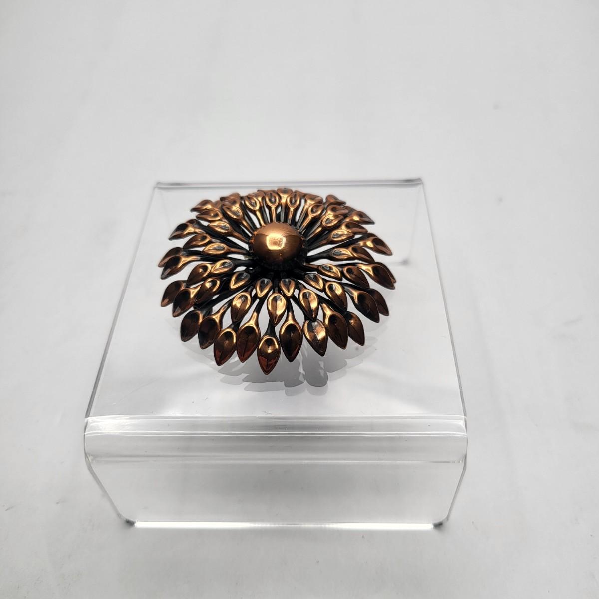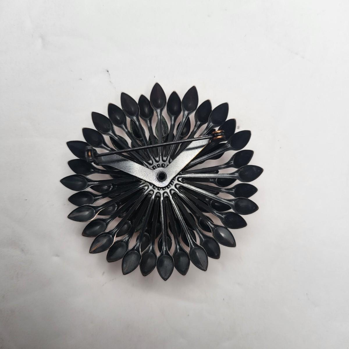 Antique gold tone, open work, small pin with center rhinestone, 1.75" x 3./4".