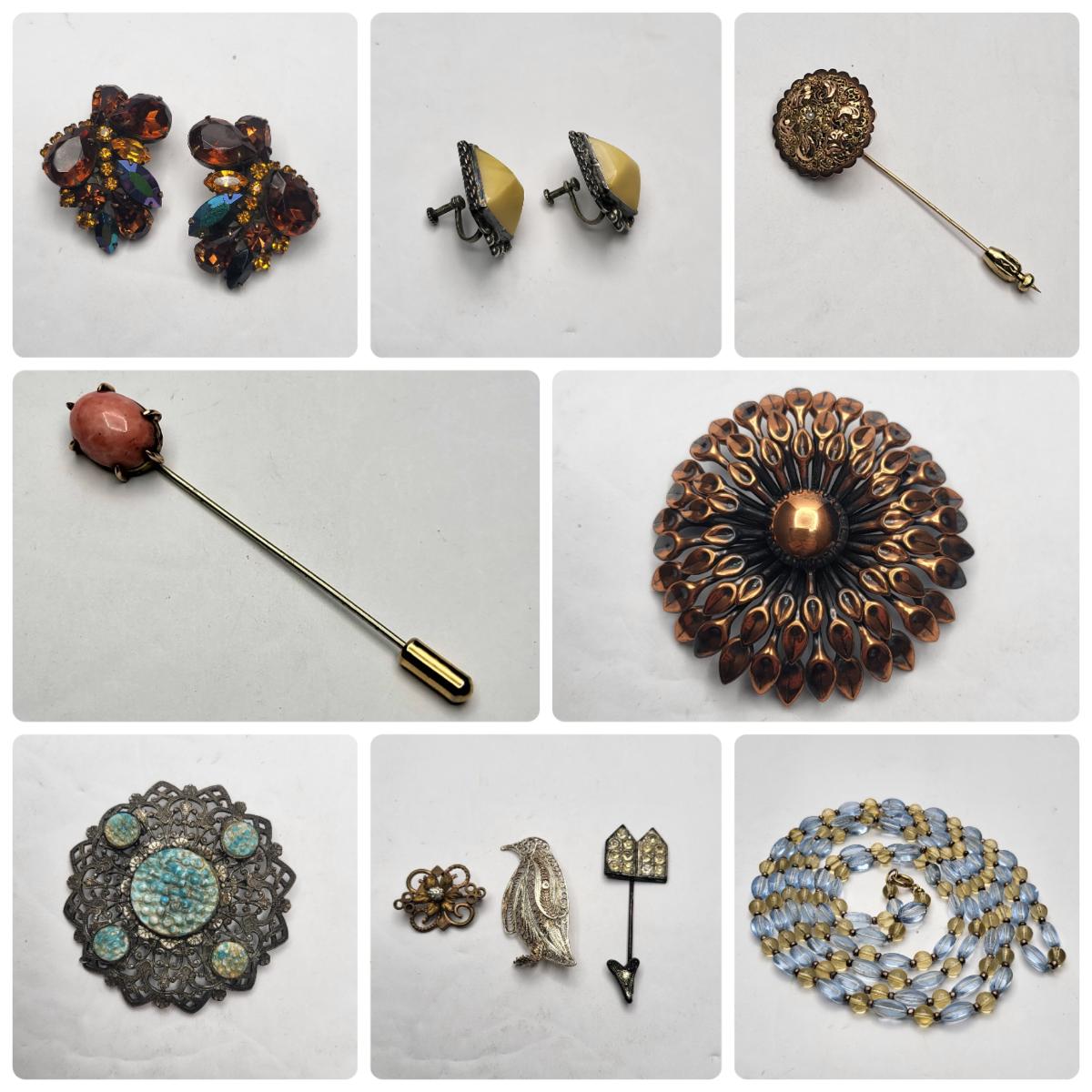 Antique Jewelry Includes Sterling Copper Rhinestone Gold