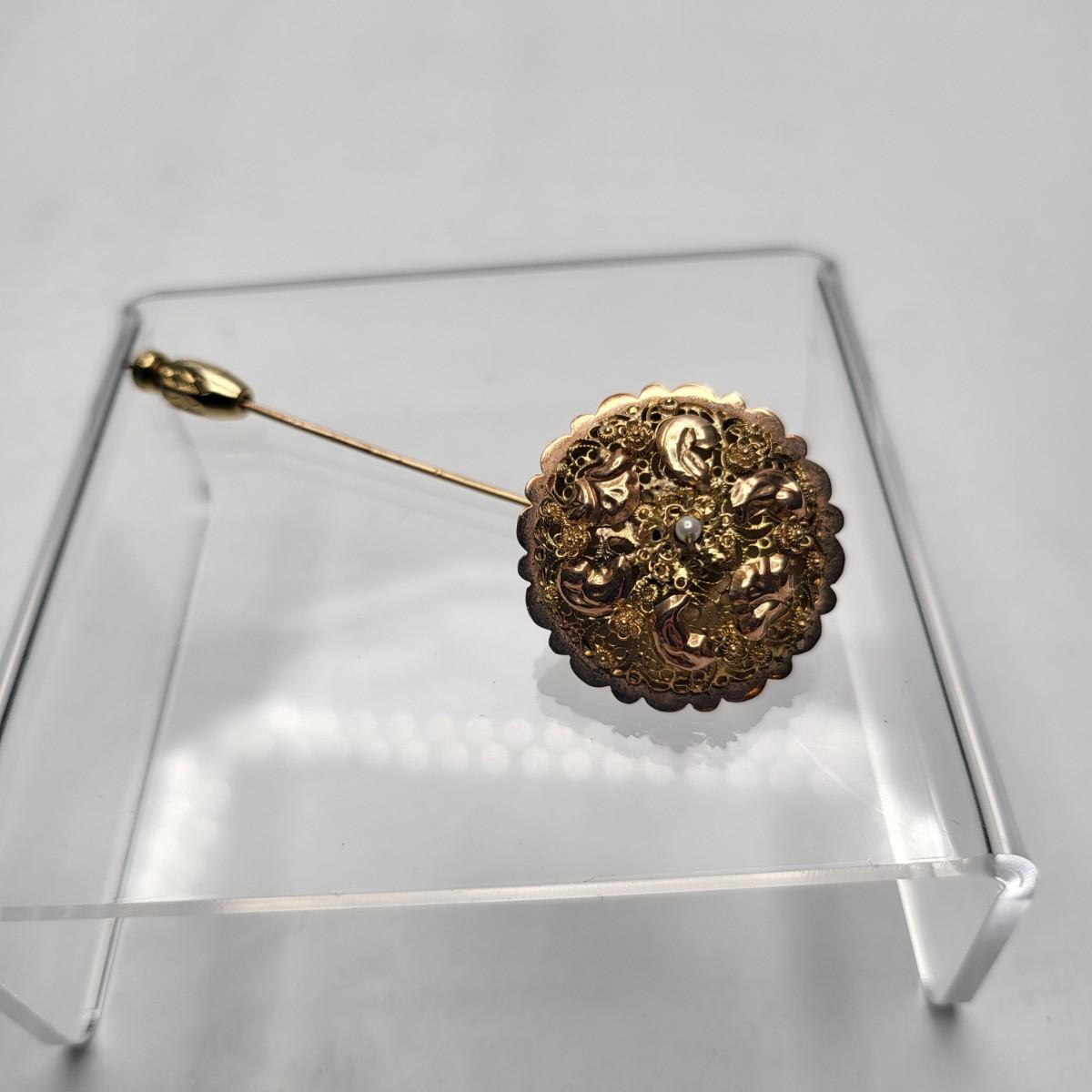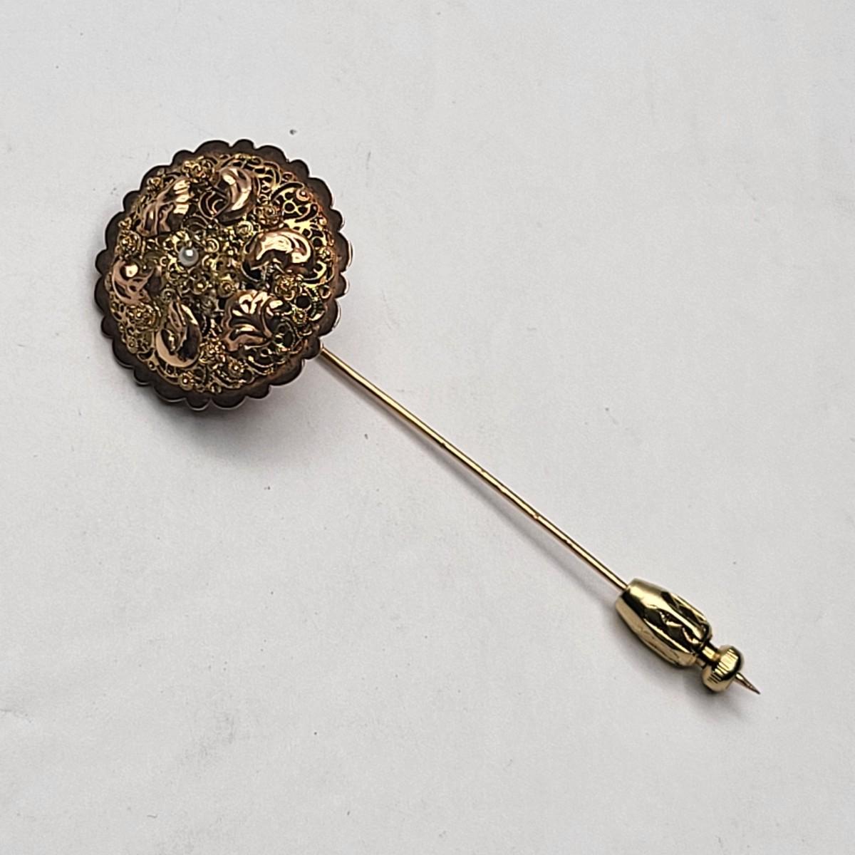 Possibly rose & yellow gold, ornate stick pin 3.25" long x 1.25".