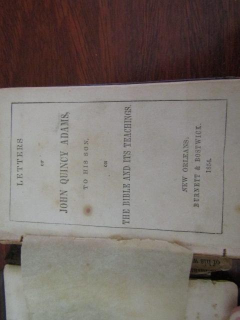 Antique John Quincy Adams Letters to His Son 'The Bible and Its Teachings' New Orleans, 1854 Burnett & Bostwick book has stains and binding issues but seems to be intact