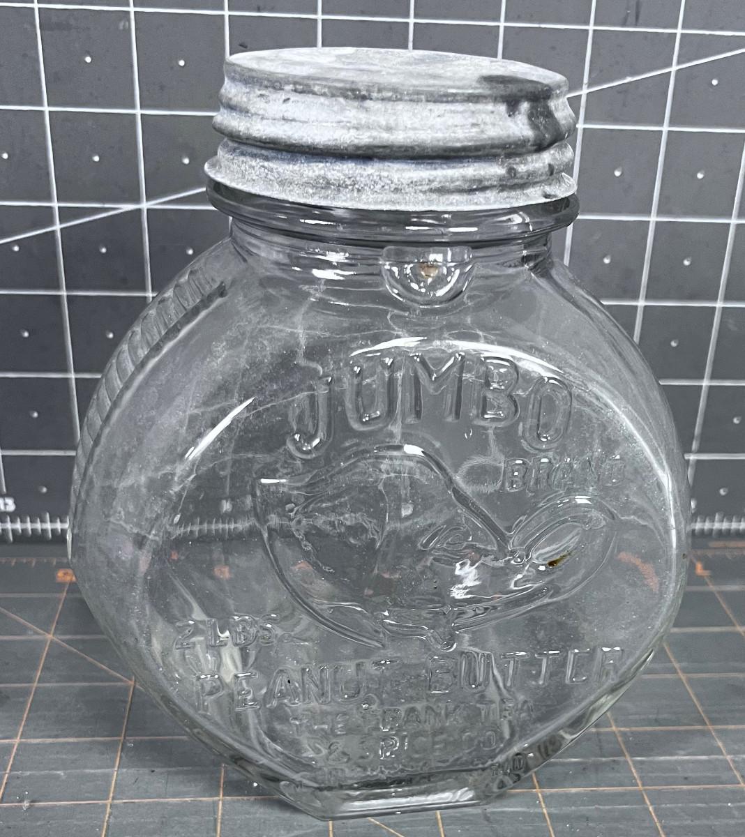 Antique Jumbo Brand Peanut Butter Jar with Zinc Lid
