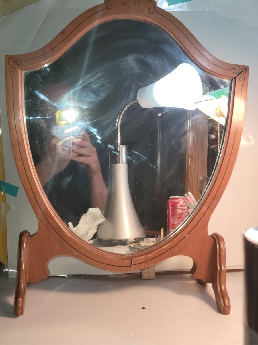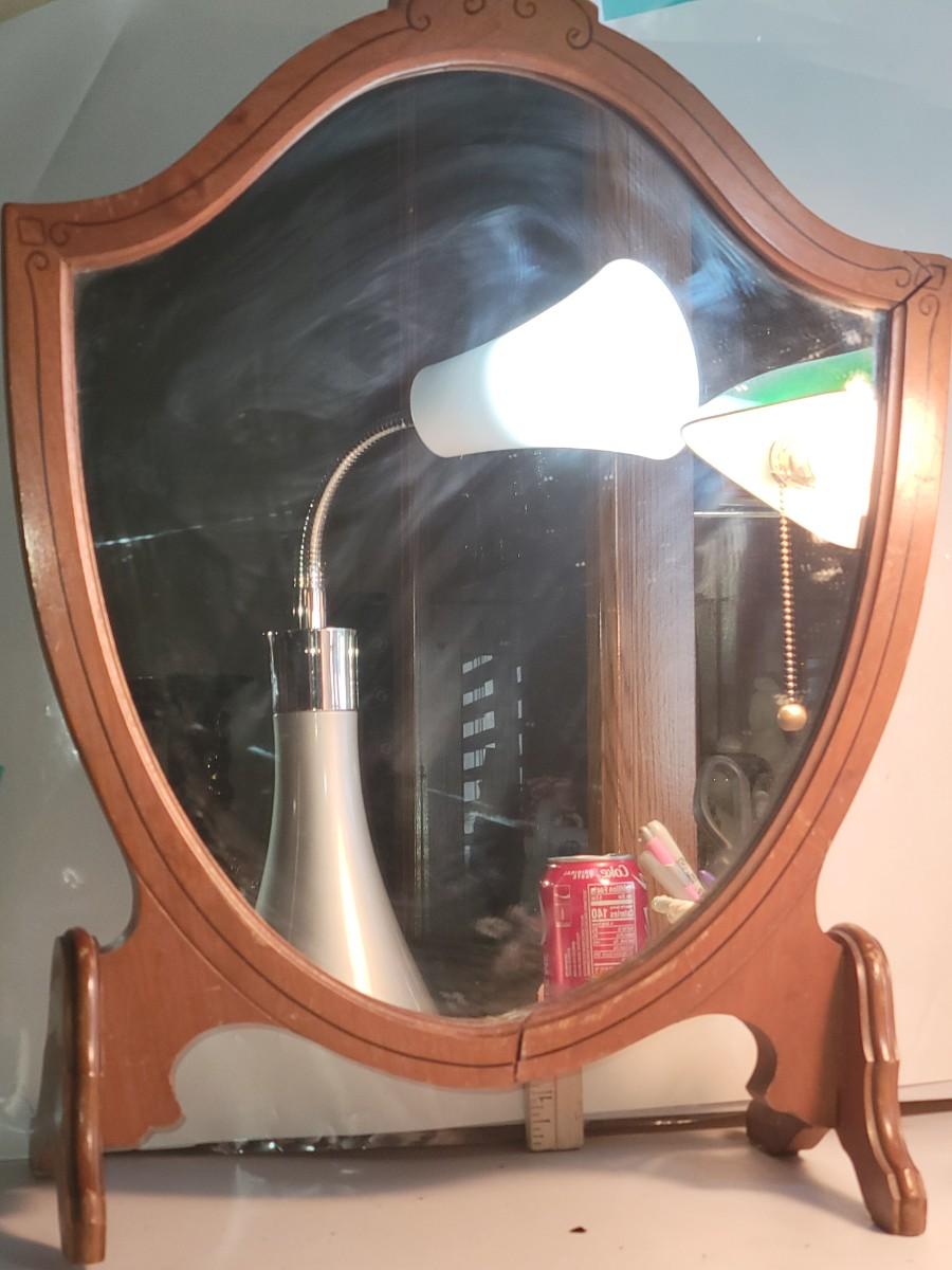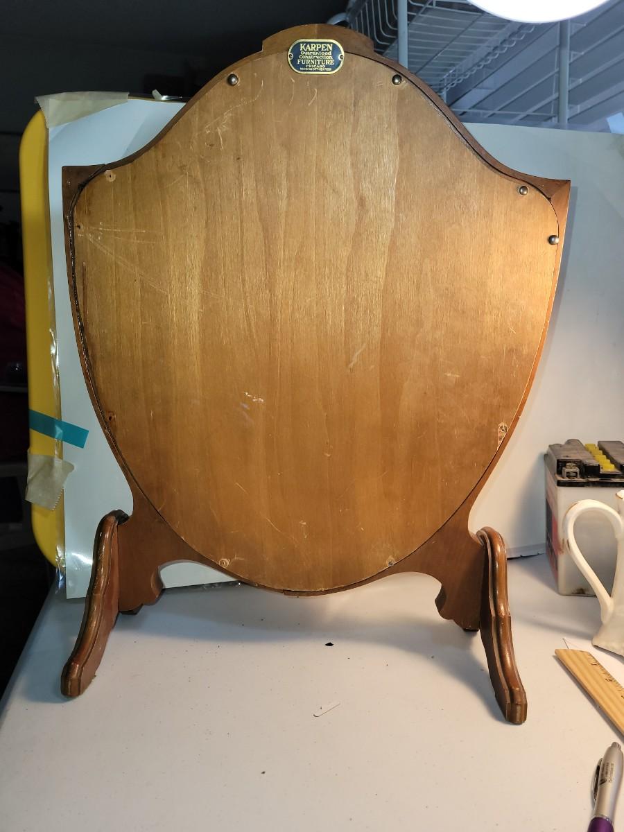 It has been repaired but still in pretty good shape. 19.5 " tall 16" wide
