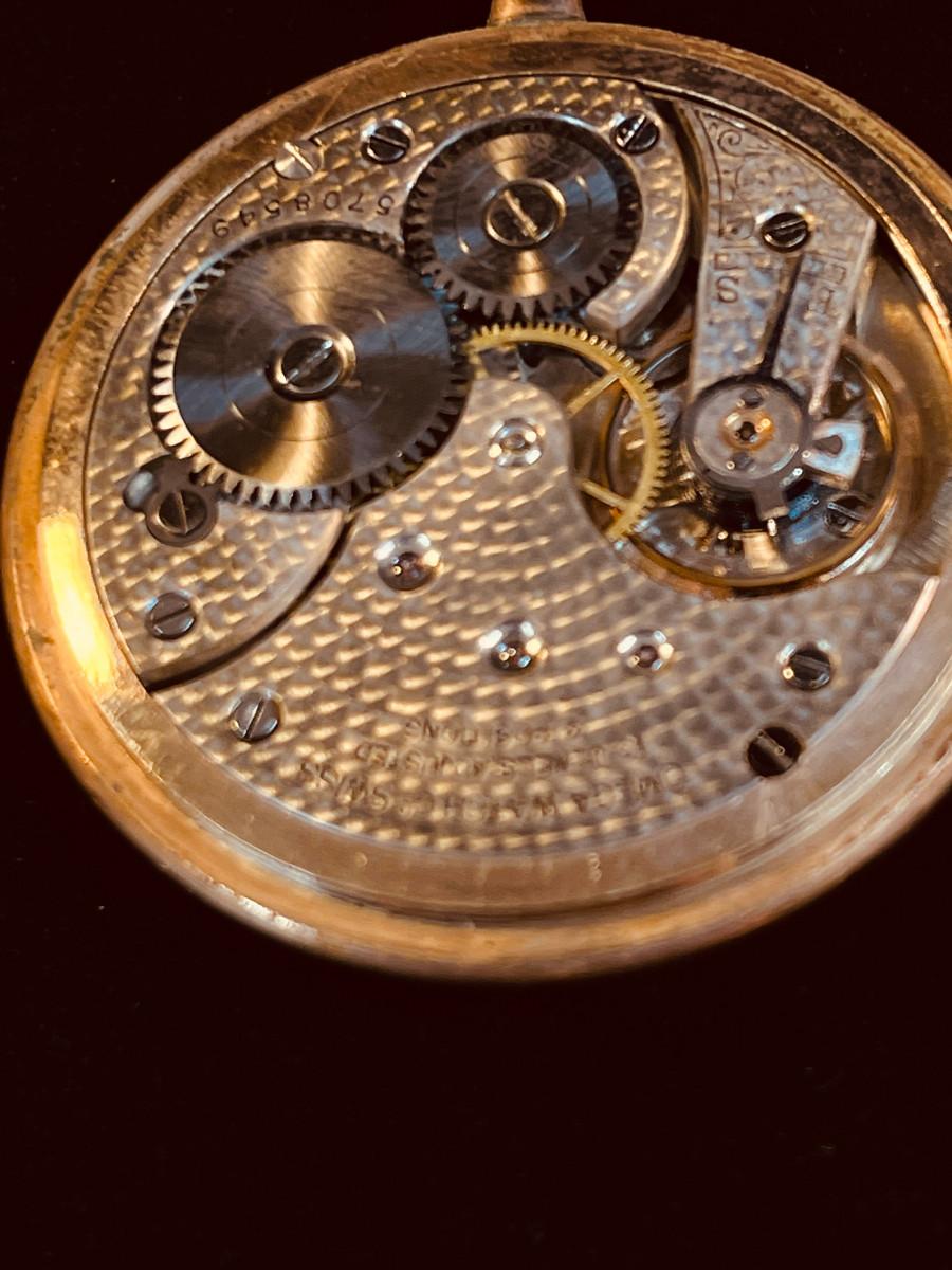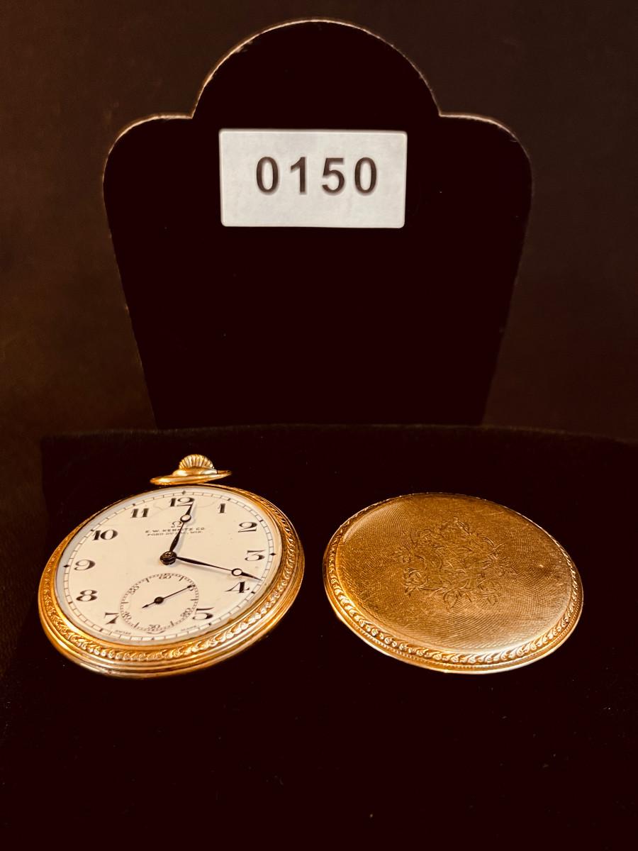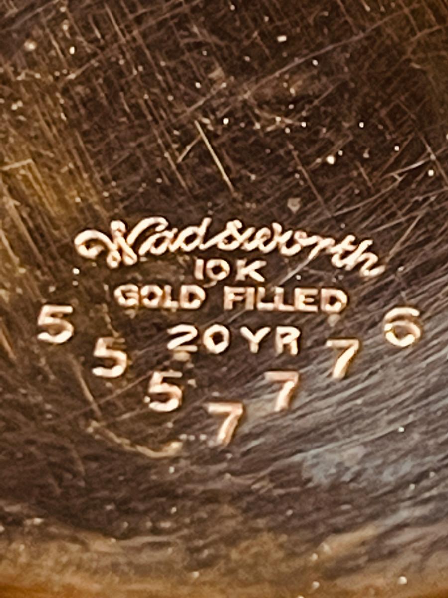 The subject items an antique “Kemnitz” pocket mens watch produced in Fond du Lac, Wisconsin, housed in a Wadsworth 20 yr. 10K yellow gold filled case. The case has been hand-engraved with an elaborate crest surrounded by fine cross-hatching. The watch winds and ticks.