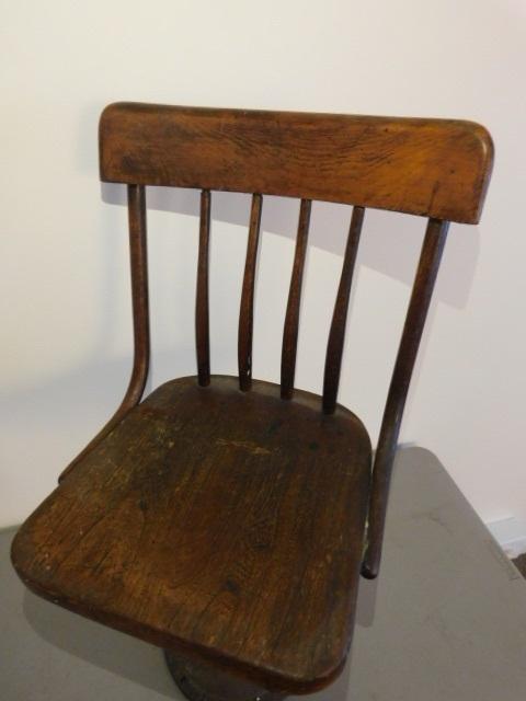 Antique Kenney Bros. and Wolkins Oak Seat and Metal Post Student's Chair 30"