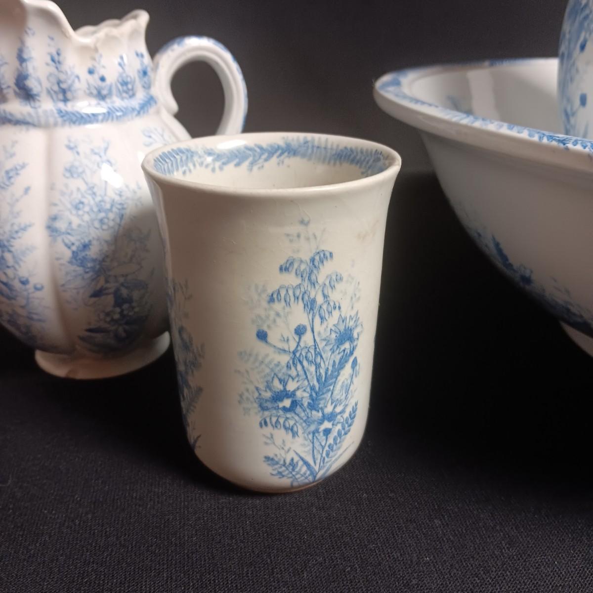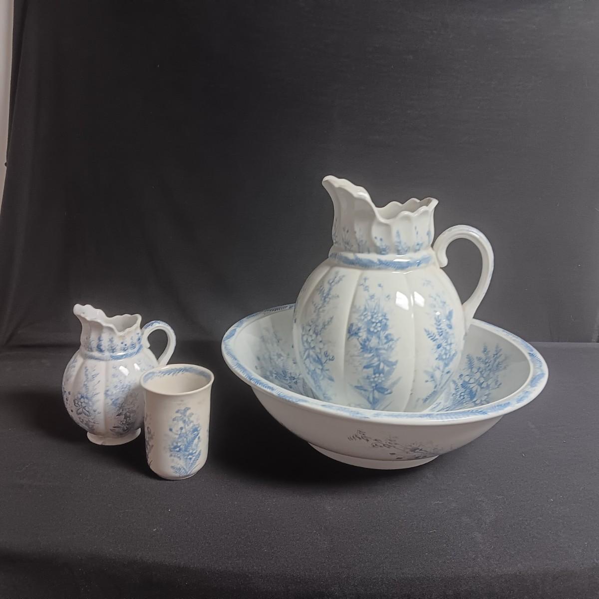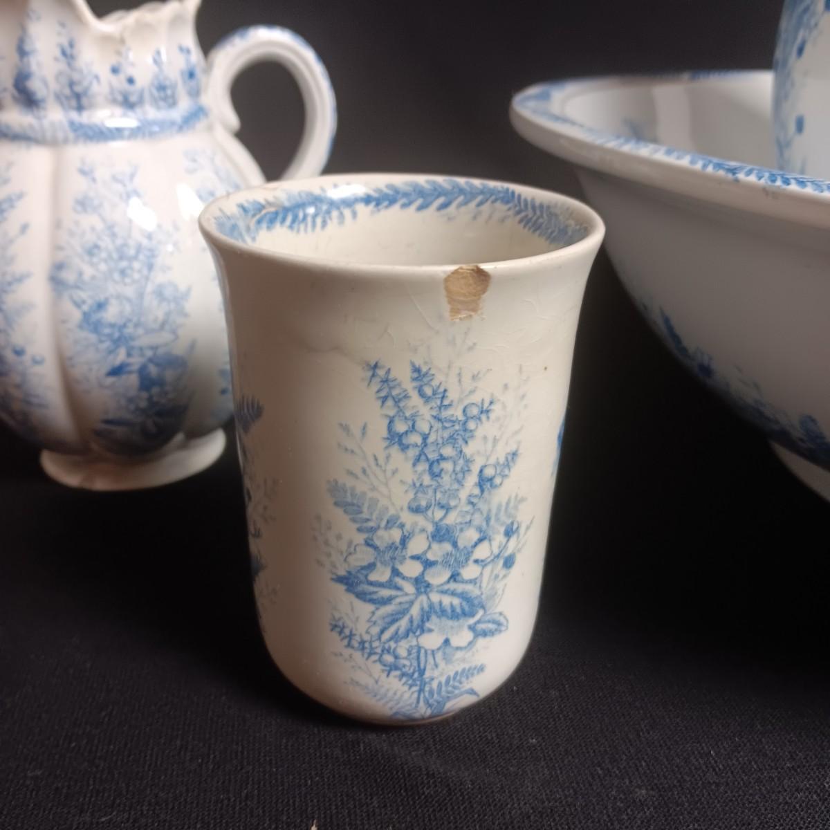 ANTIQUE KENT EMERY BURSLEM WASH BOWL, PITCHER, DRINKING CUP AND SMALL PITCHER