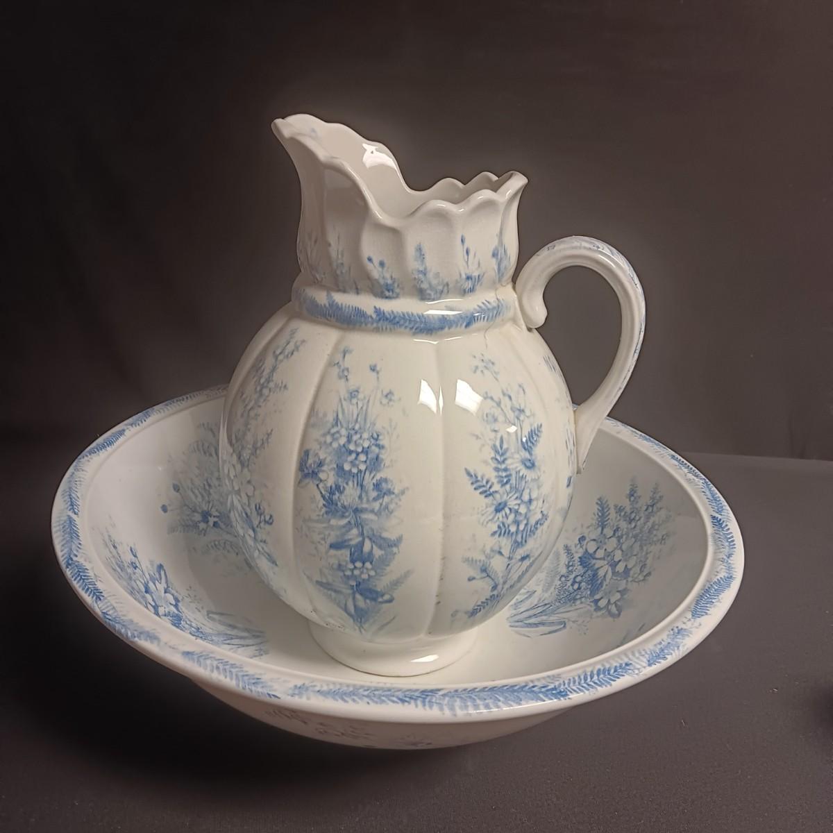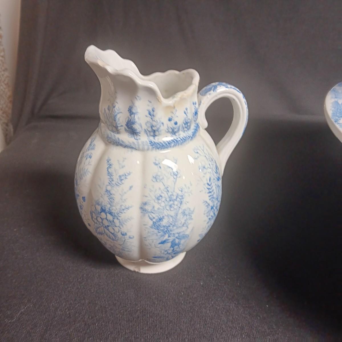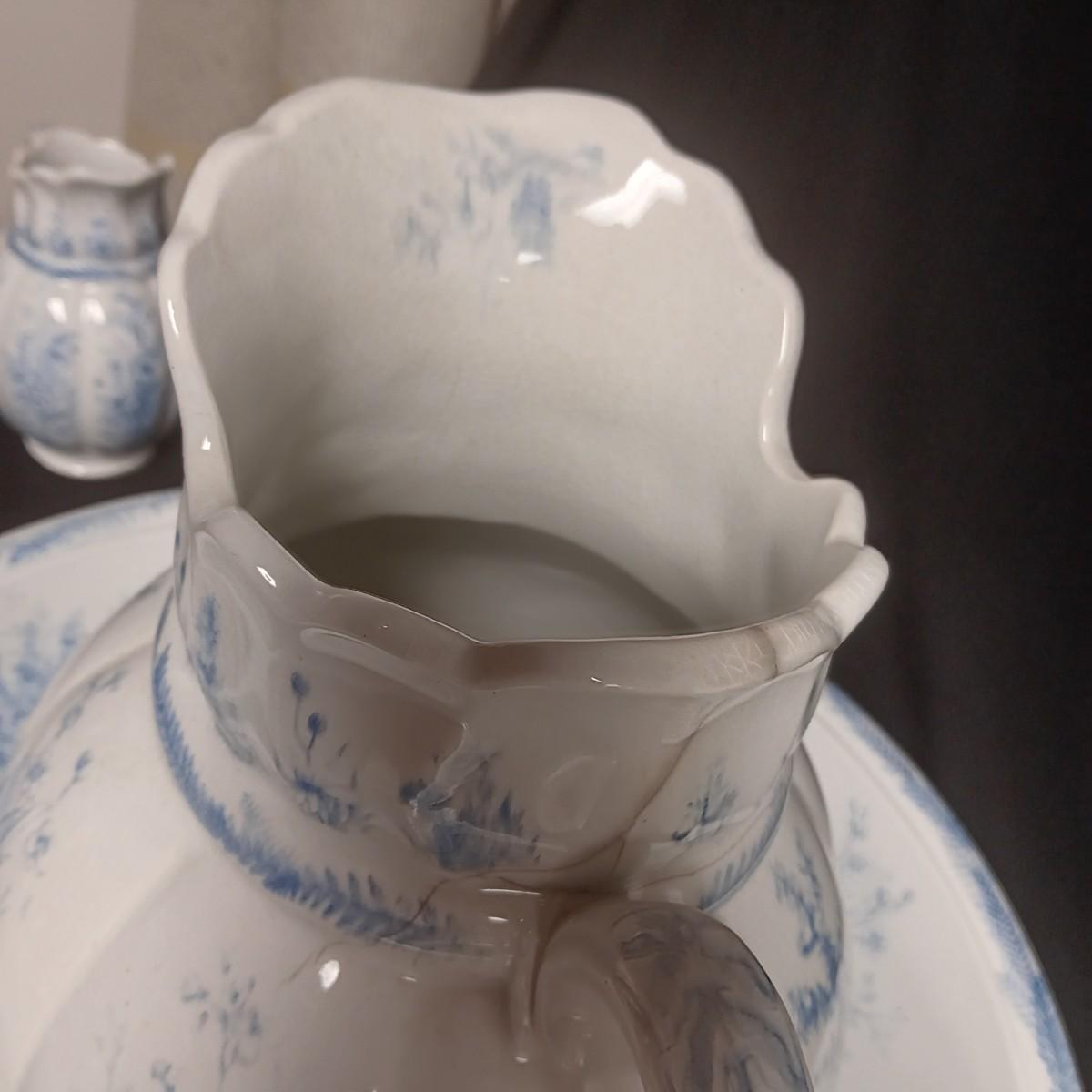 ANTIQUE KENT EMERY BURSLEM WASH BOWL, PITCHER, DRINKING CUP AND SMALL PITCHER