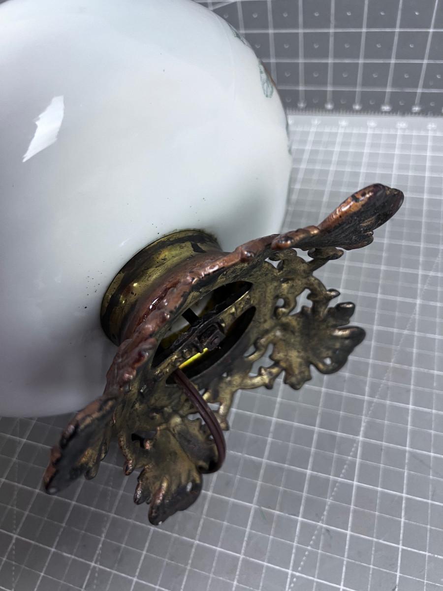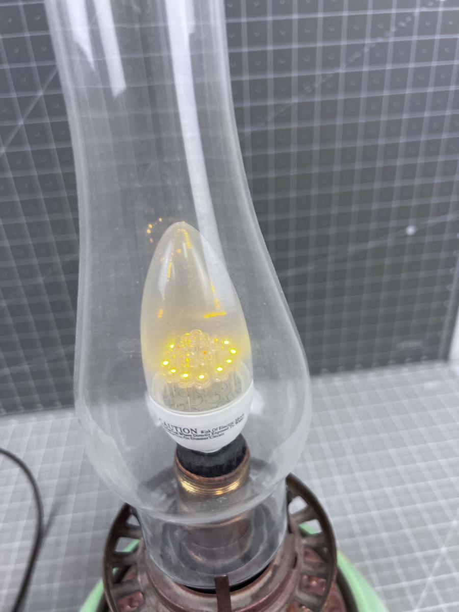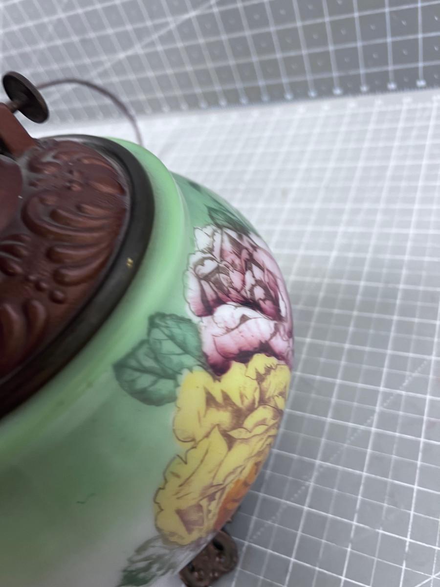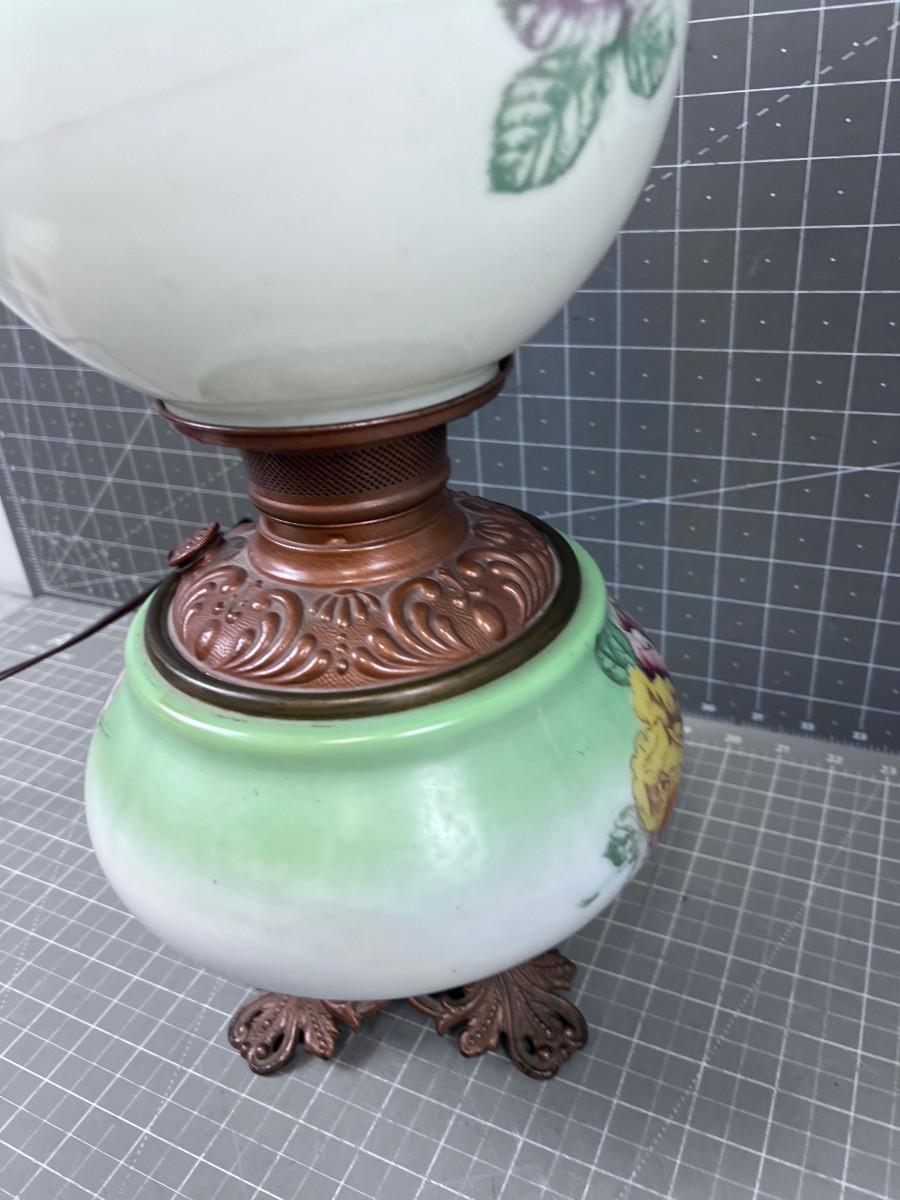 Antique Electrified Kerosene Lamp, Glass Green and Roses