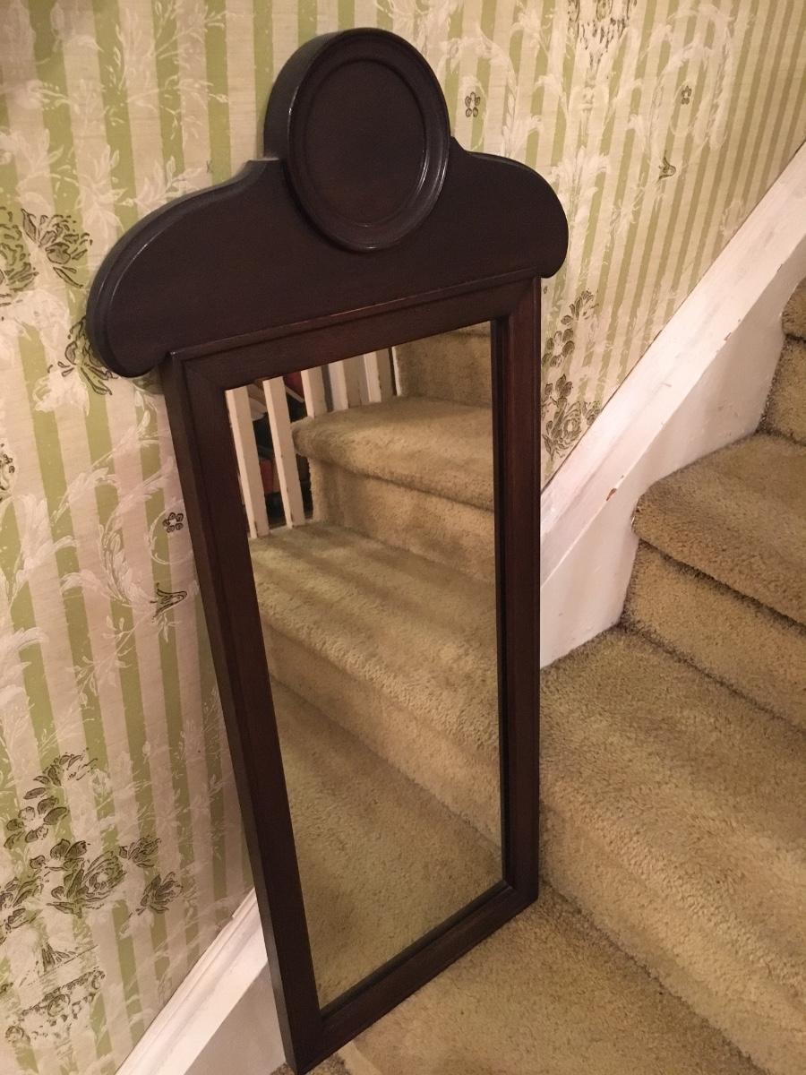 Lovely wallhanging solid mahogany mirror in like new condition.