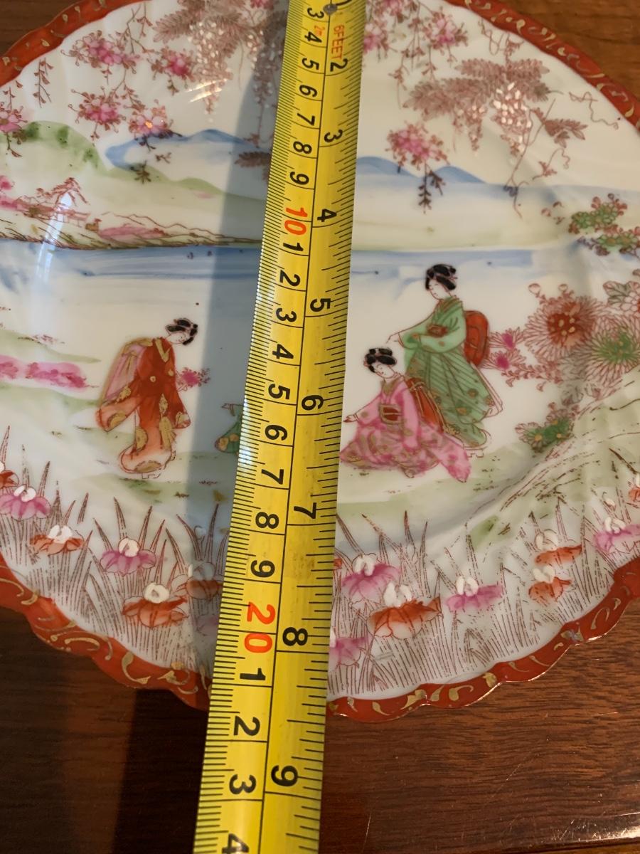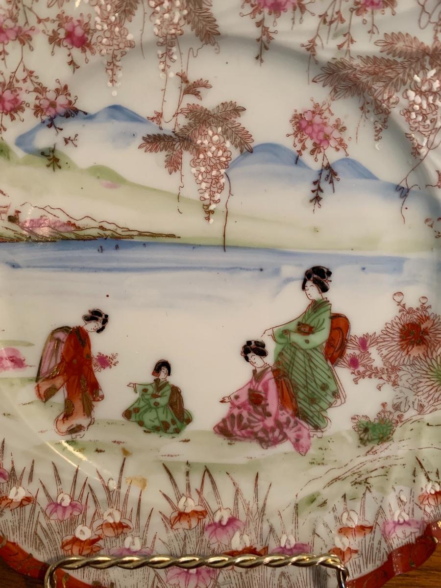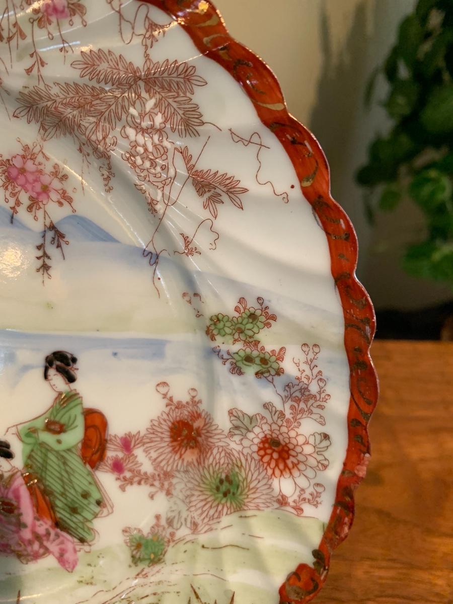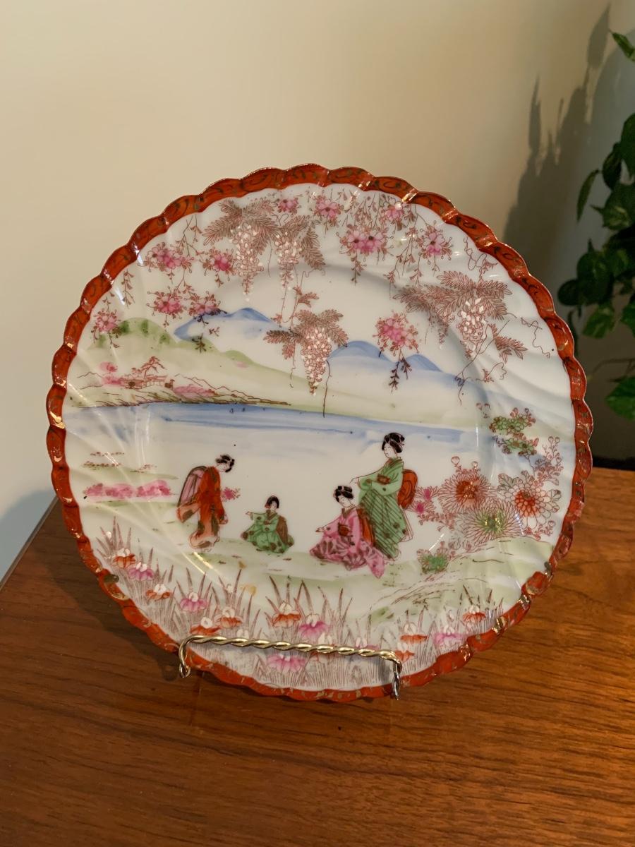 Antique Kutani Porcelain Geisha Girl Plates Scalloped Edge