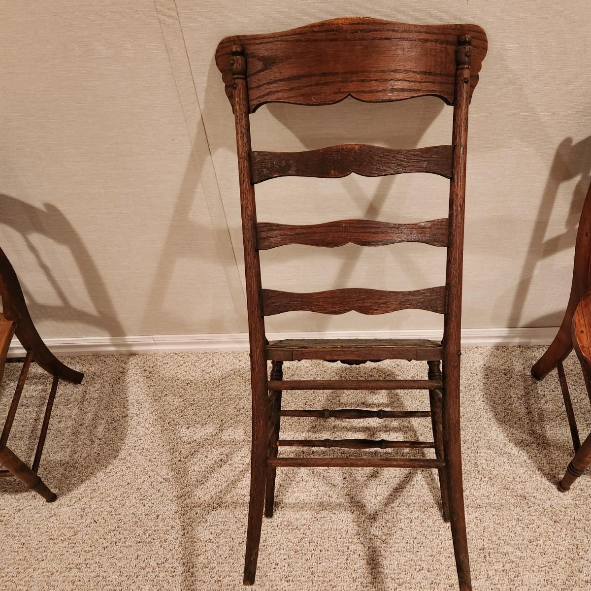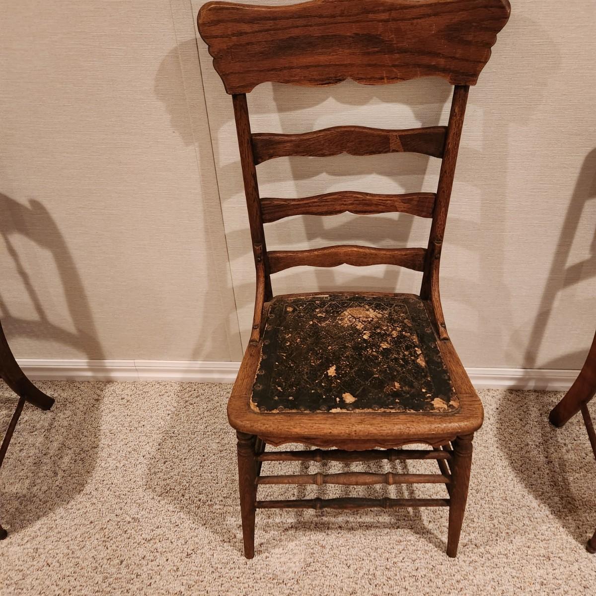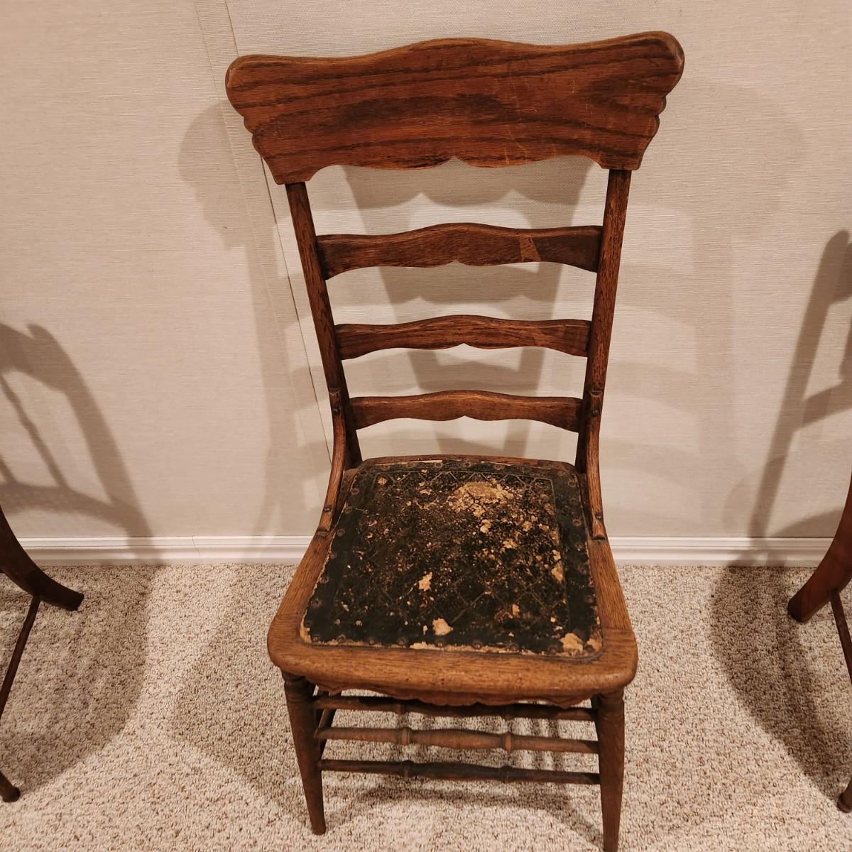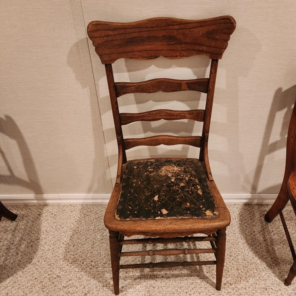 Antique Ladder back Chair w leather seat