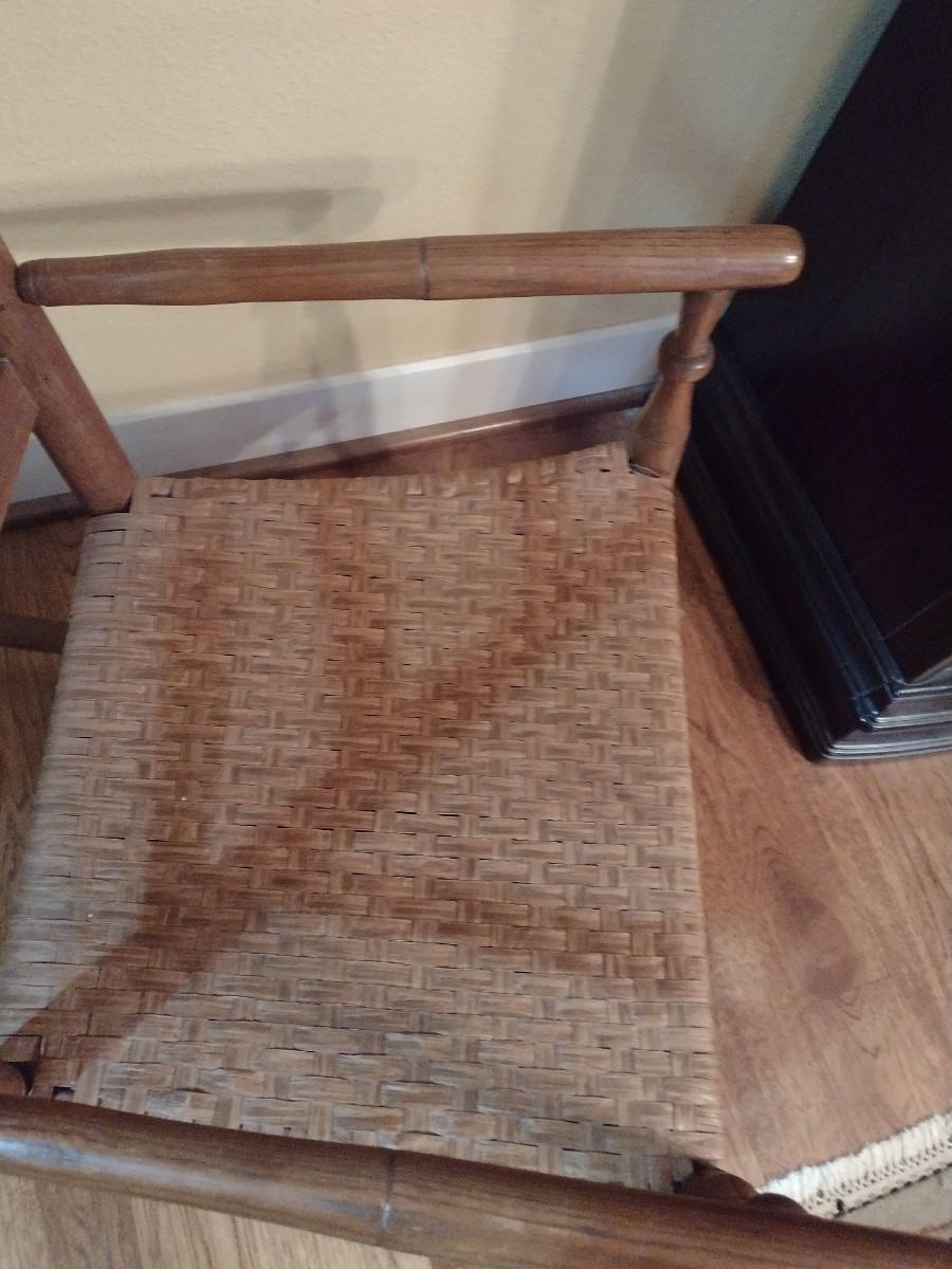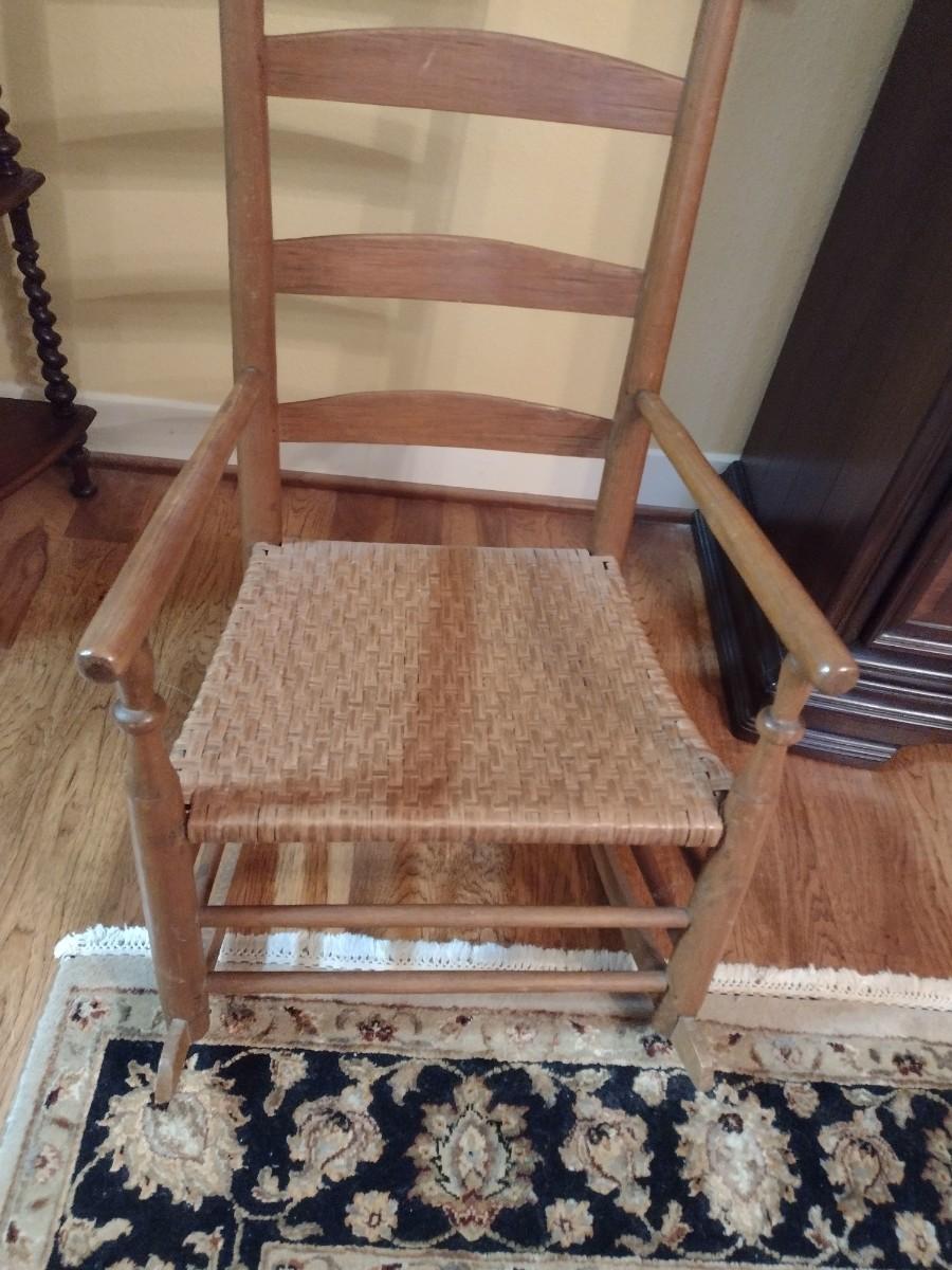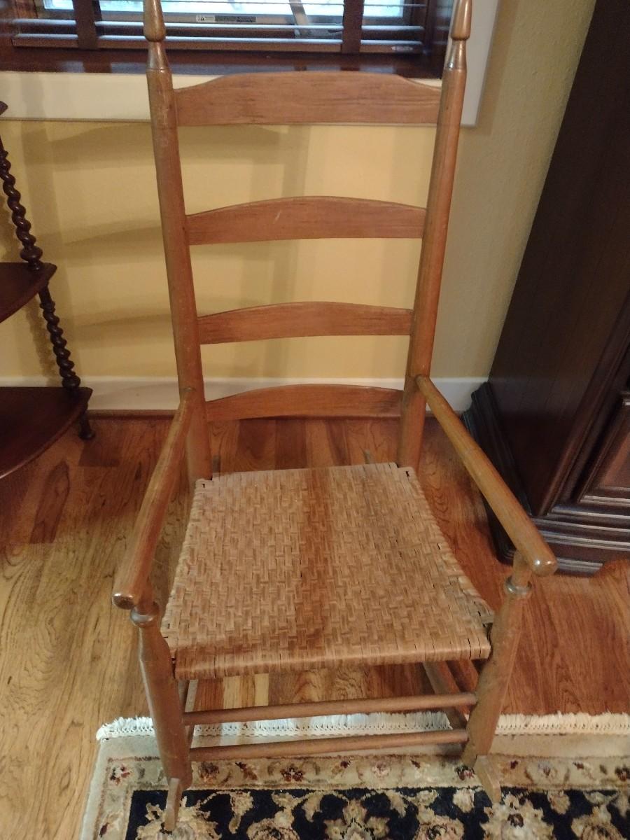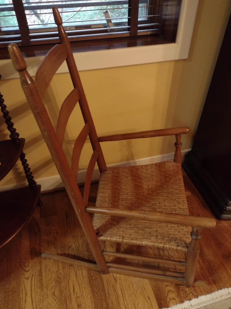 Antique Ladderback Splint Wood Seat Rocking Chair