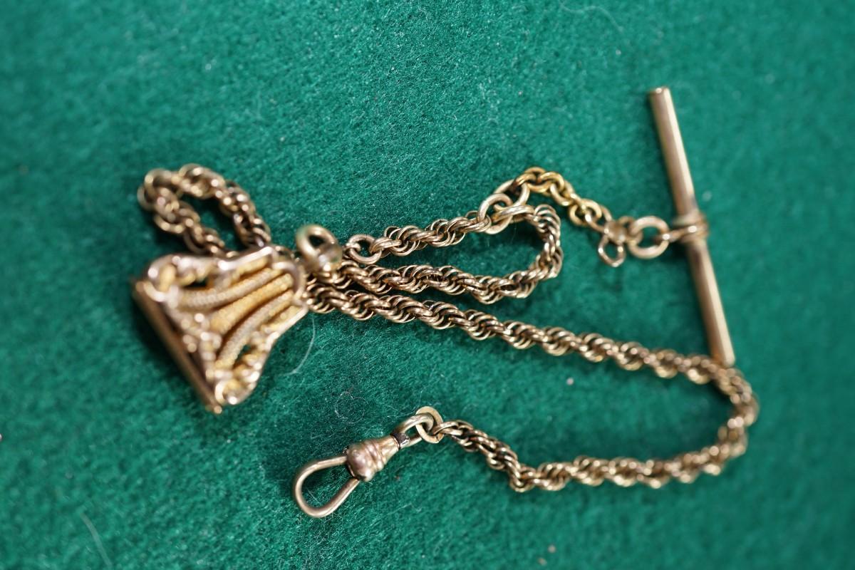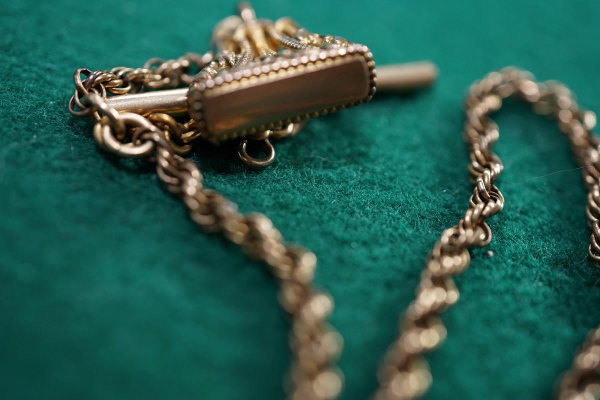 ANTIQUE LADIES WATCH CHAIN WITH FILLIGREE FOB FOR ENGRAVING