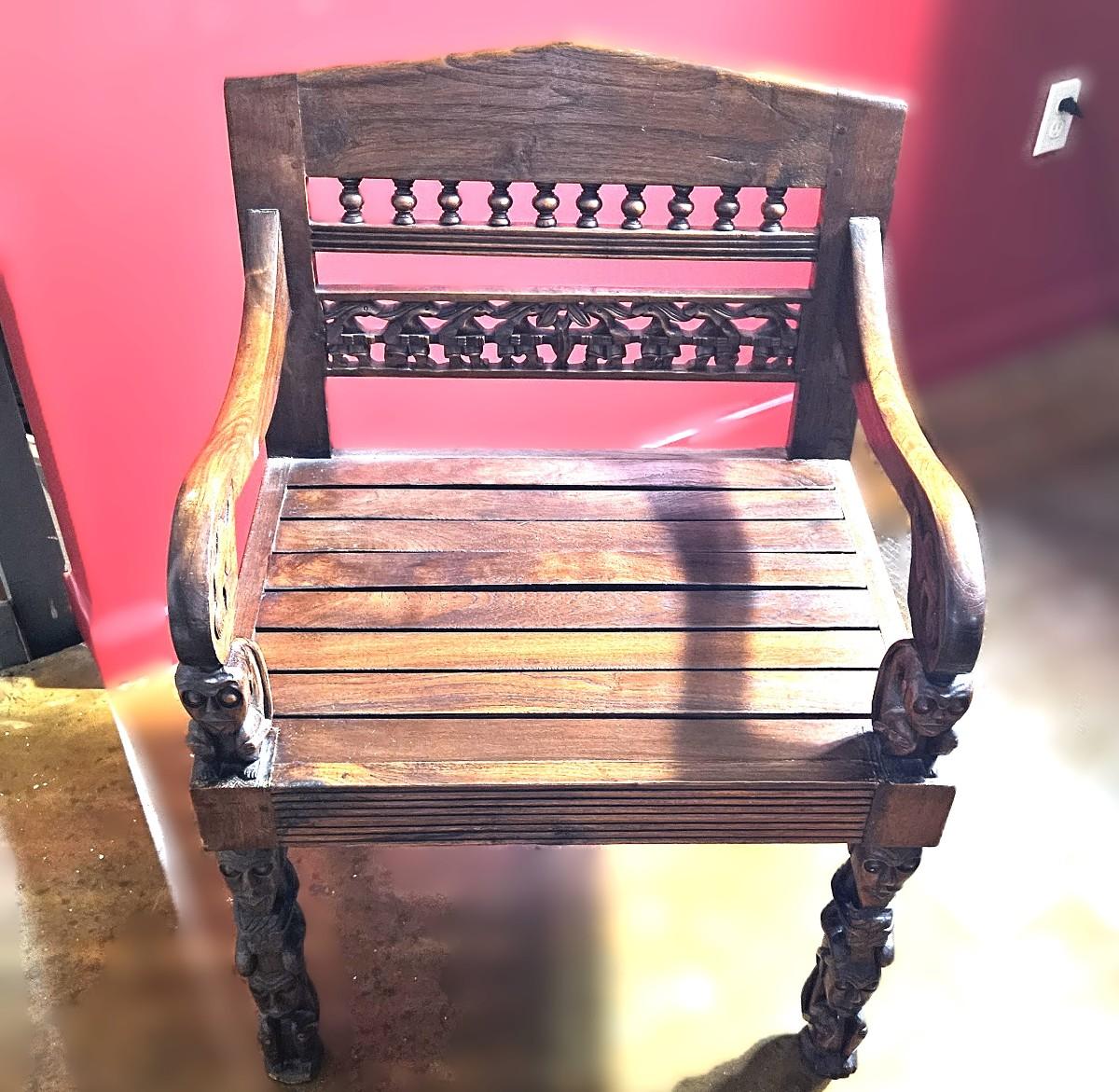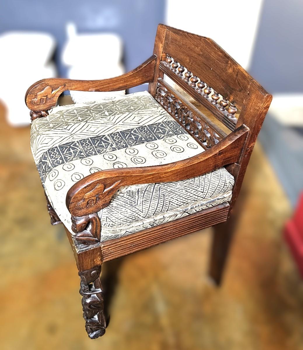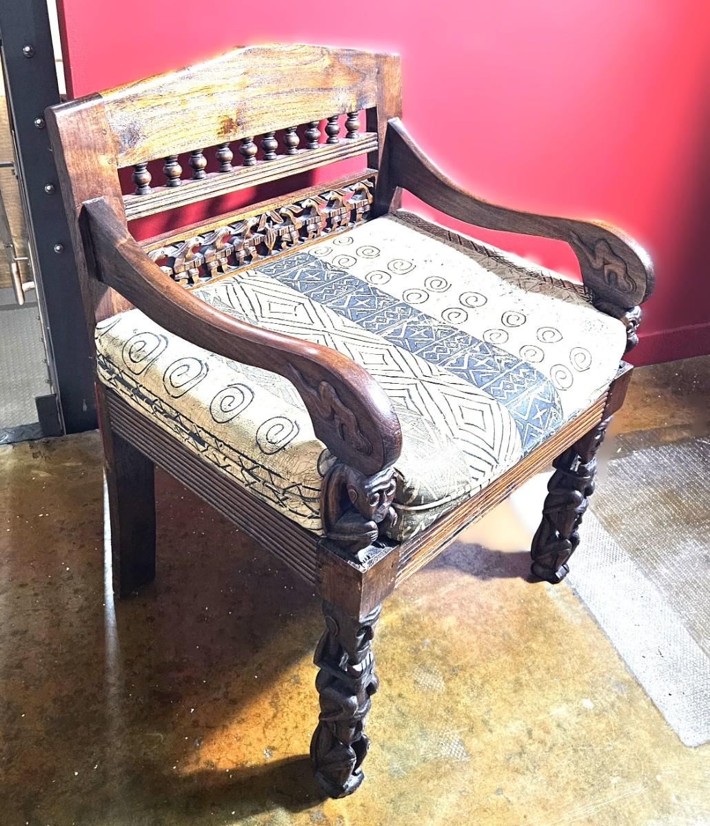 Antique Lamu Single Chair with Carved Details, 32H