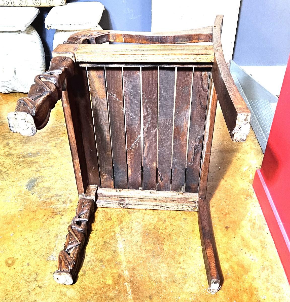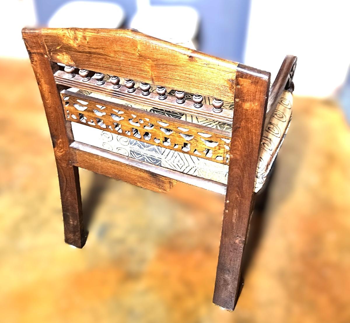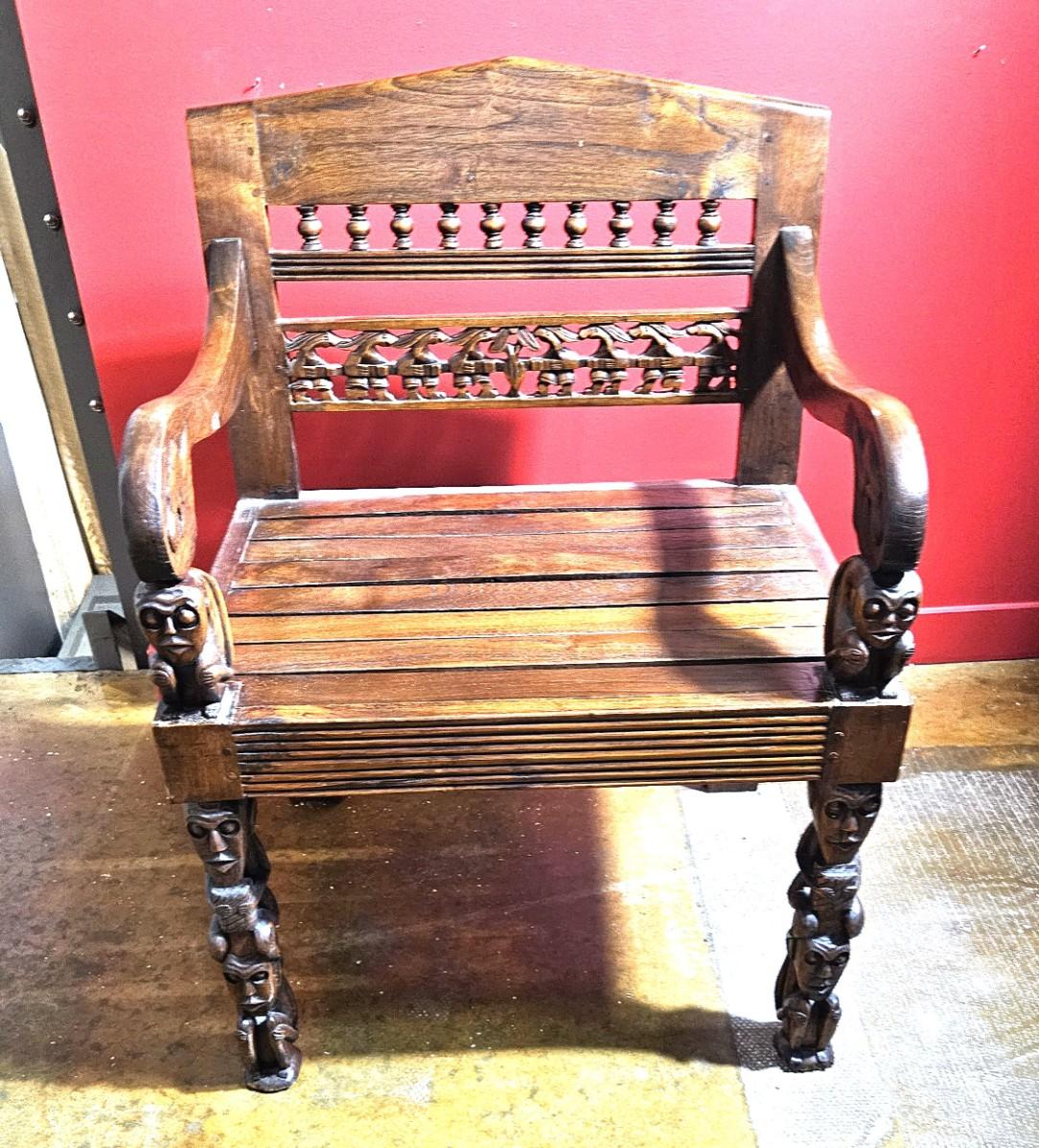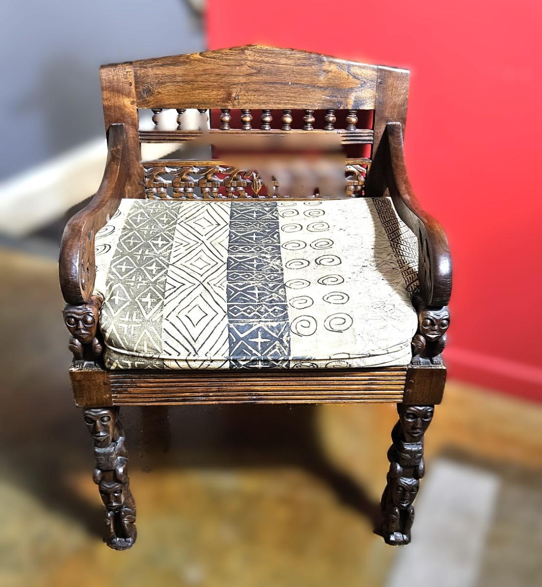 Antique Lamu Single Chair with Carved Details, 32H